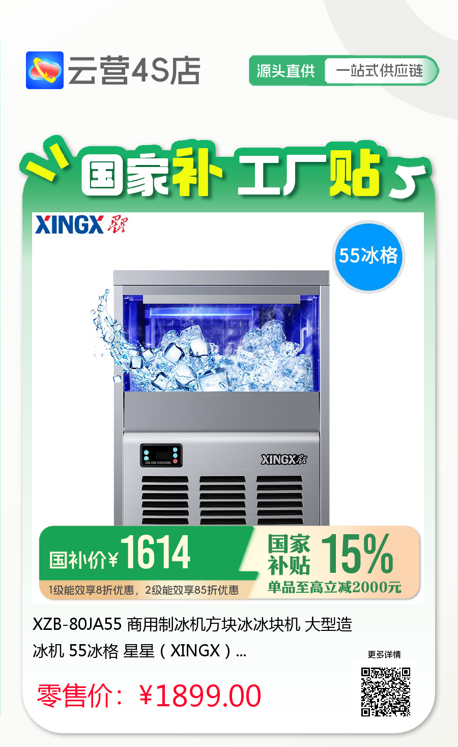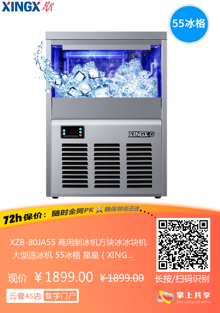 XZB-80JA55 商用制冰机方块冰冰块机 大型造冰机 55冰格 星星(XINGX)