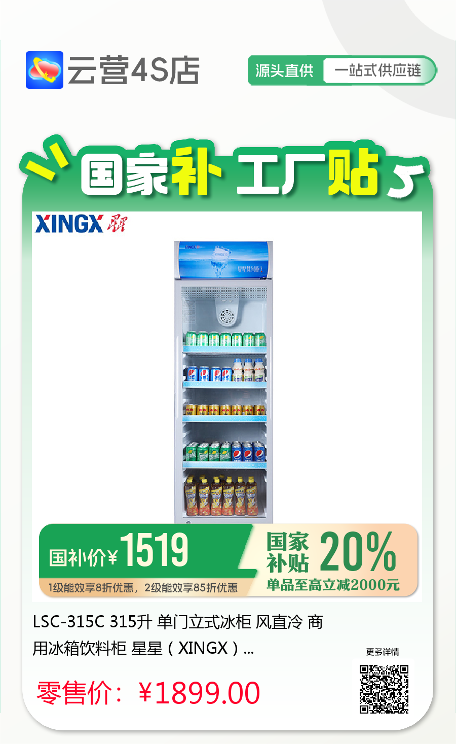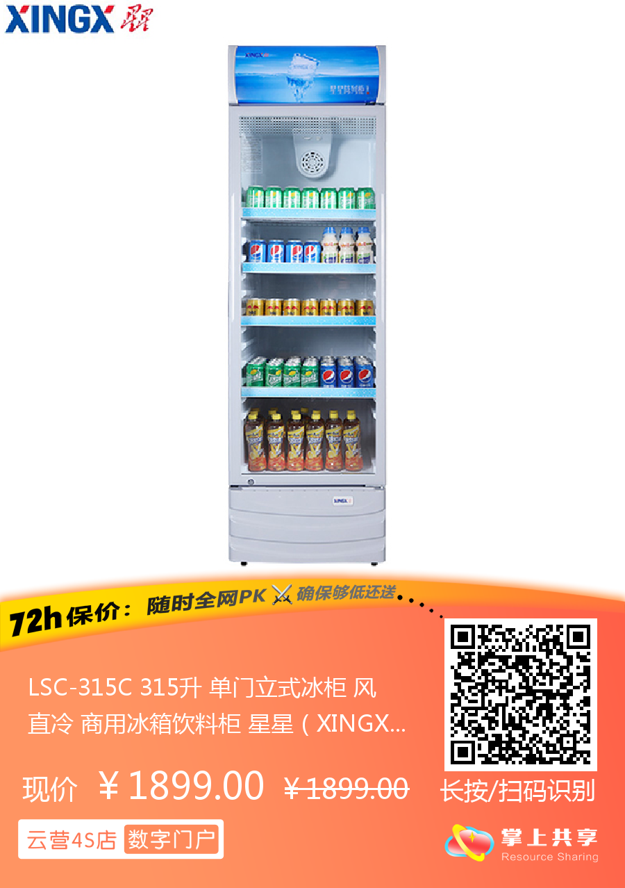 LSC-315C 315升 单门立式冰柜 风直冷 商用冰箱饮料柜 星星(XINGX)