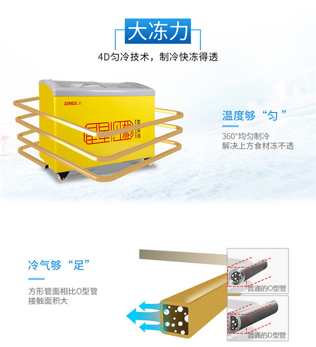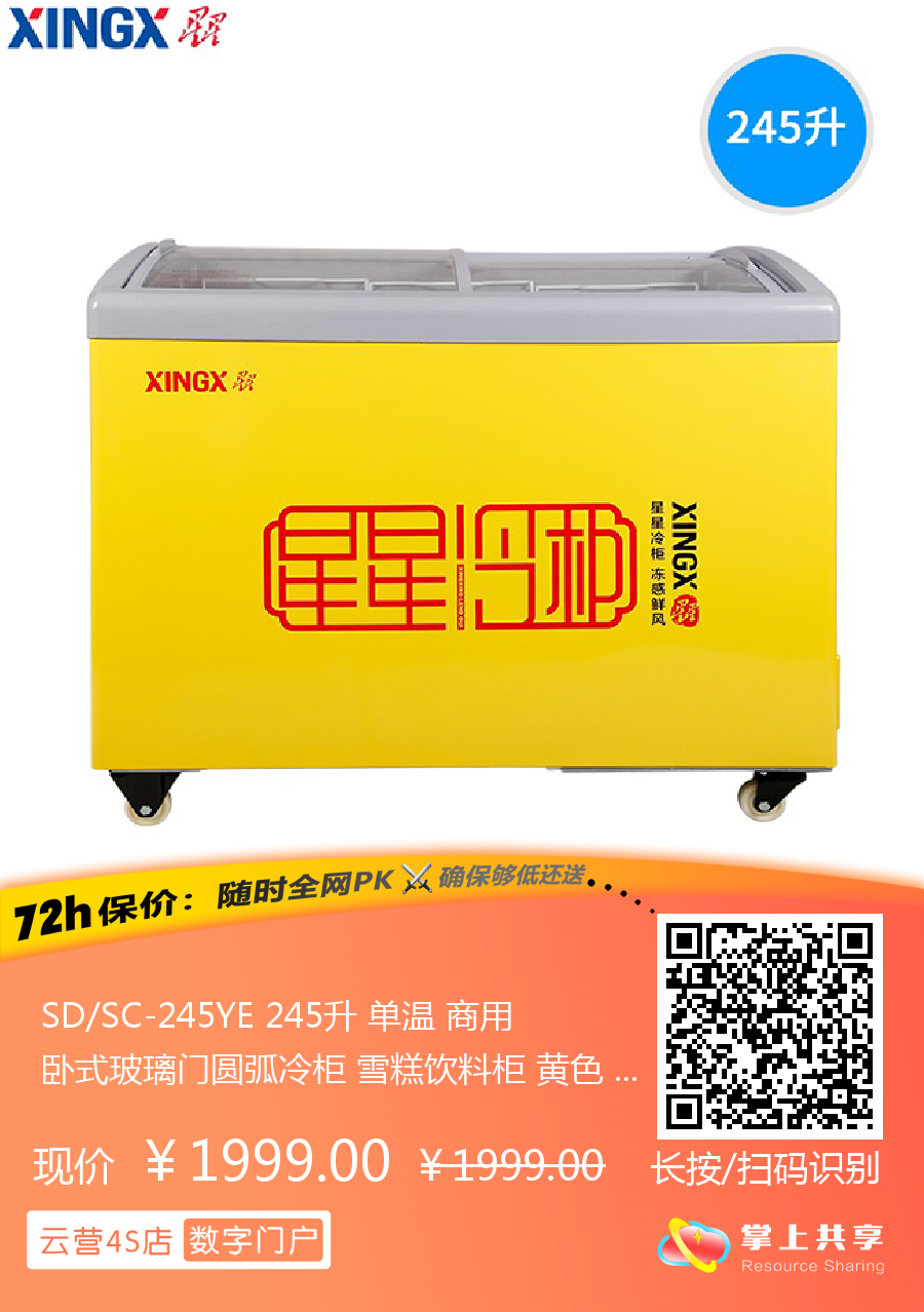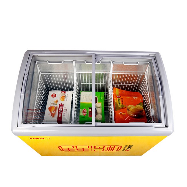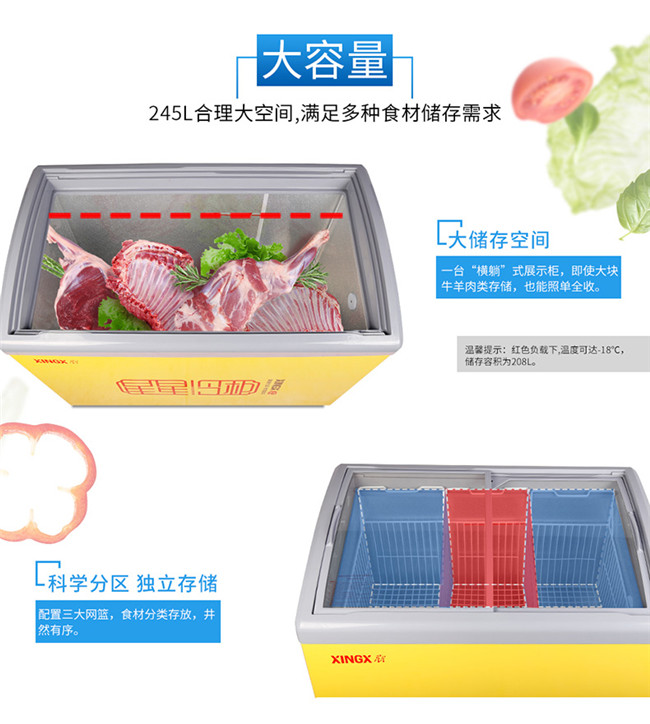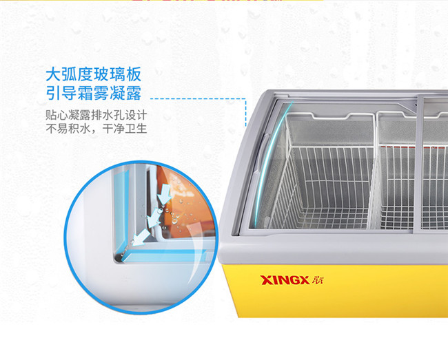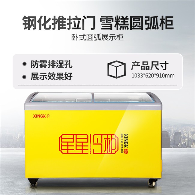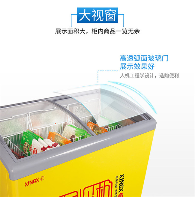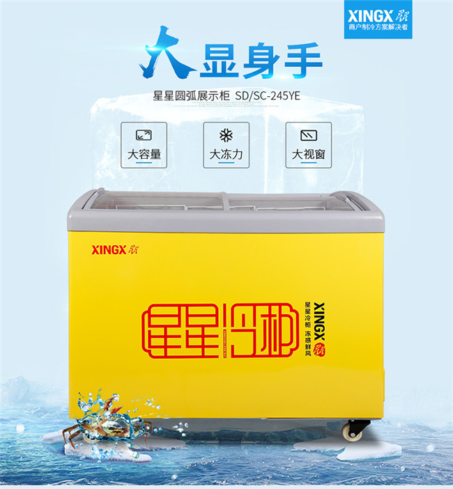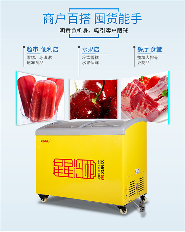 SD/SC-245YE 245升 单温 商用卧式玻璃门圆弧冷柜 雪糕饮料柜 黄色 星星(XINGX)