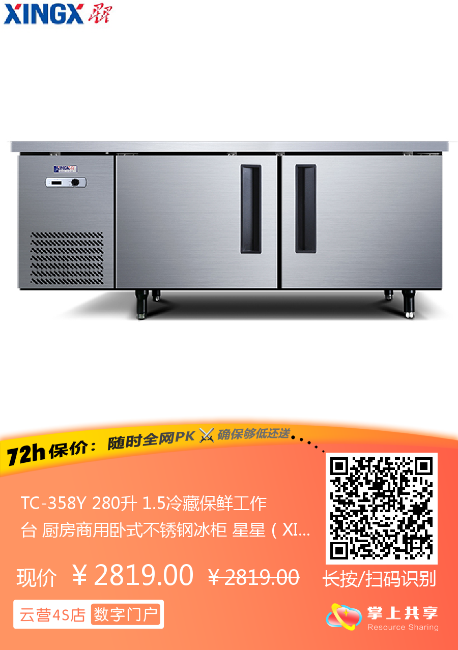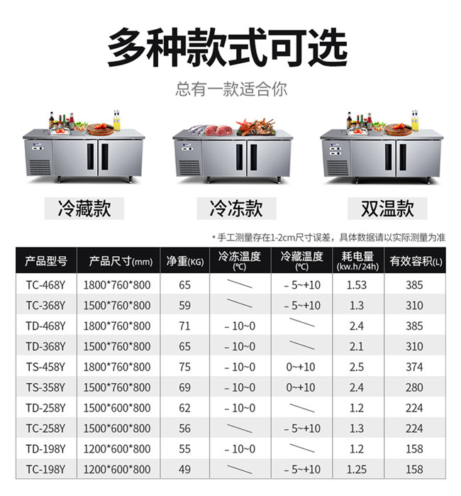 TC-358Y 280升 1.5冷藏保鲜工作台 厨房商用卧式不锈钢冰柜 星星(XINGX)