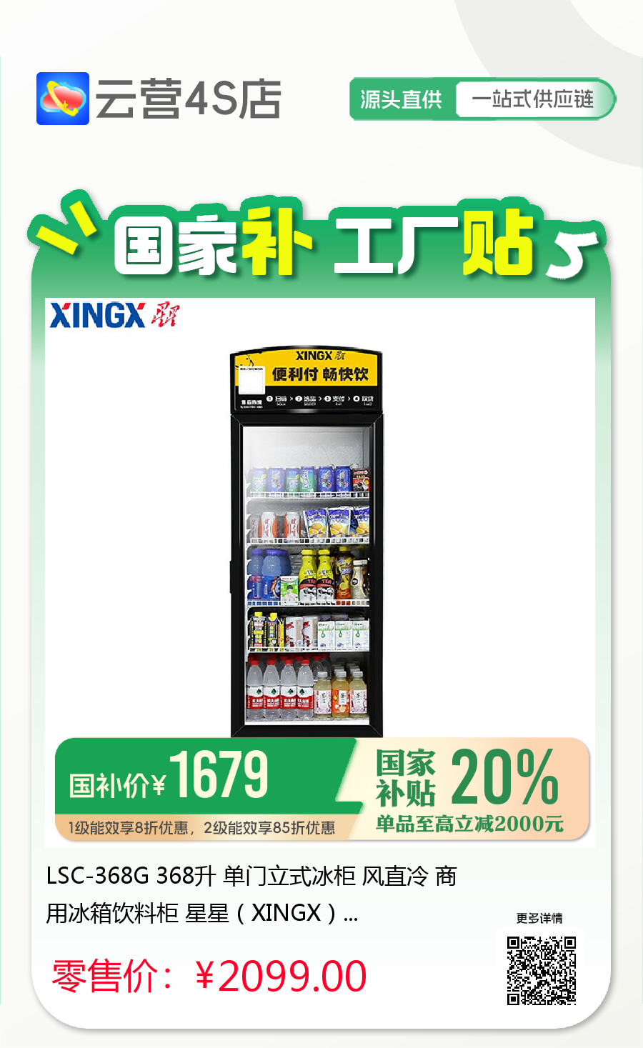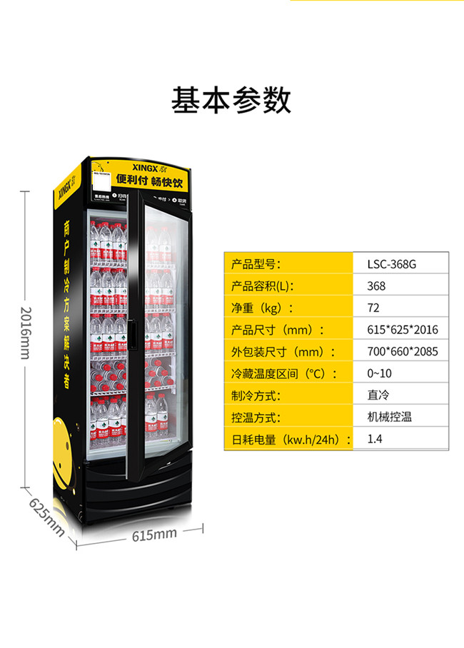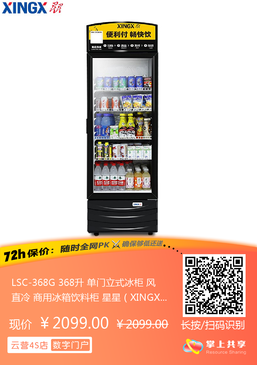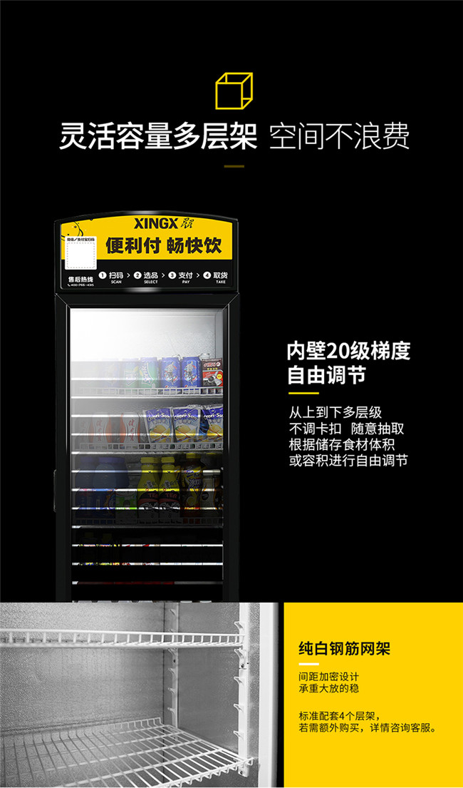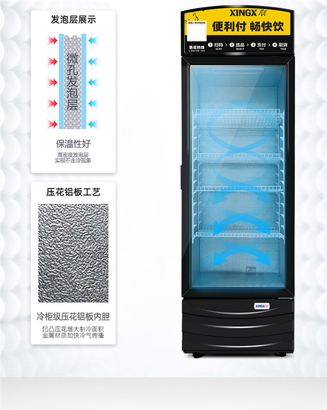 LSC-368G 368升 单门立式冰柜 风直冷 商用冰箱饮料柜 星星(XINGX)