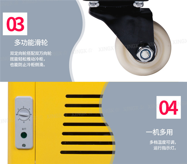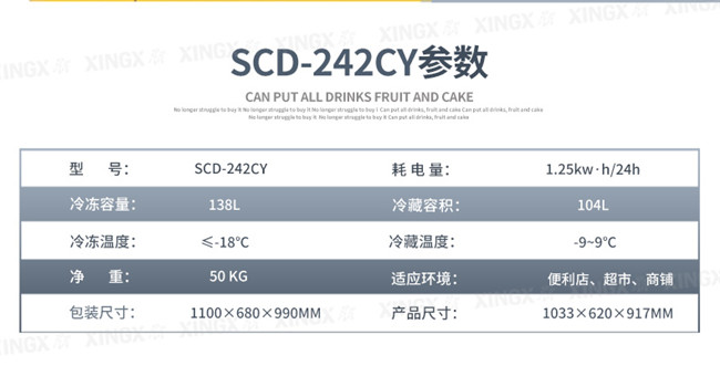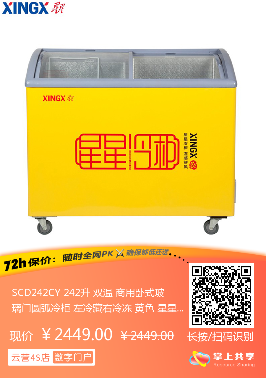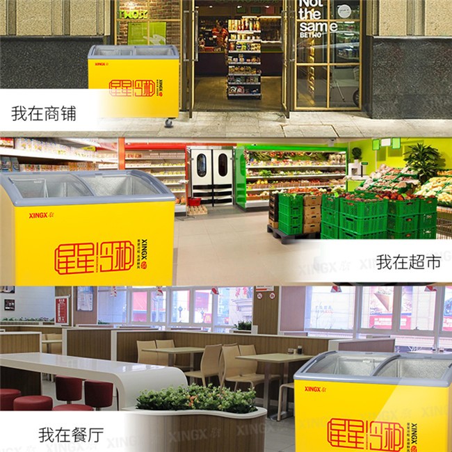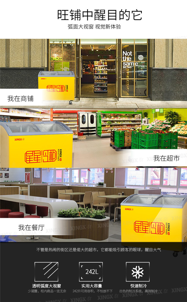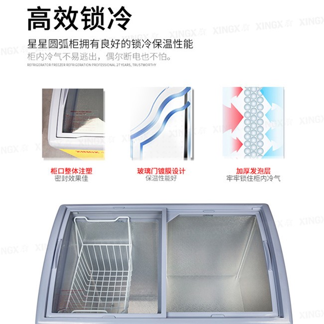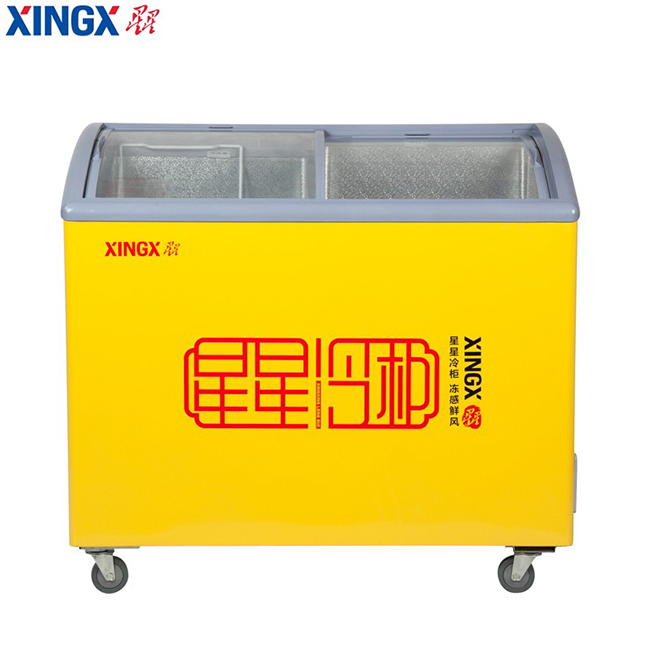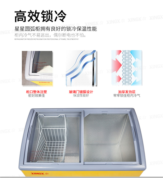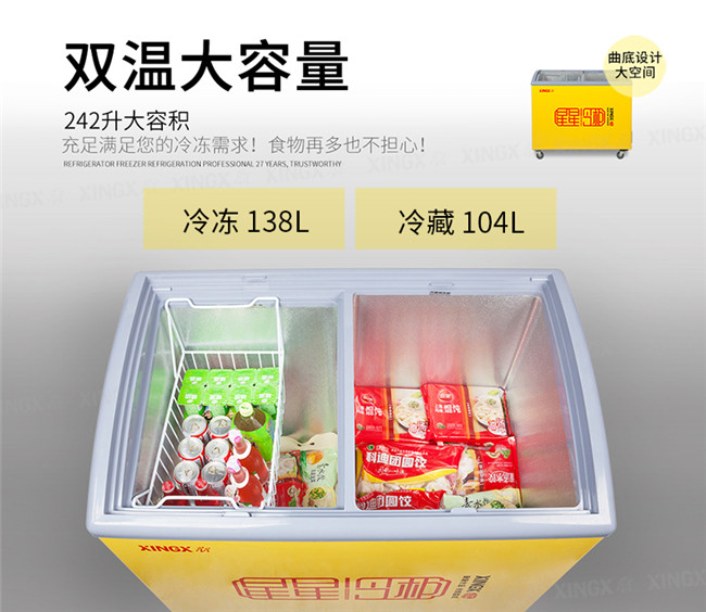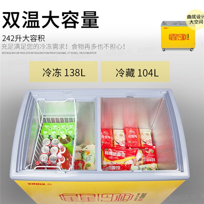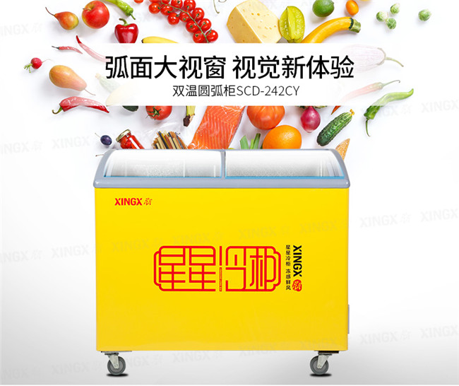 SCD242CY 242升 双温 商用卧式玻璃门圆弧冷柜 左冷藏右冷冻 黄色 星星(XINGX)