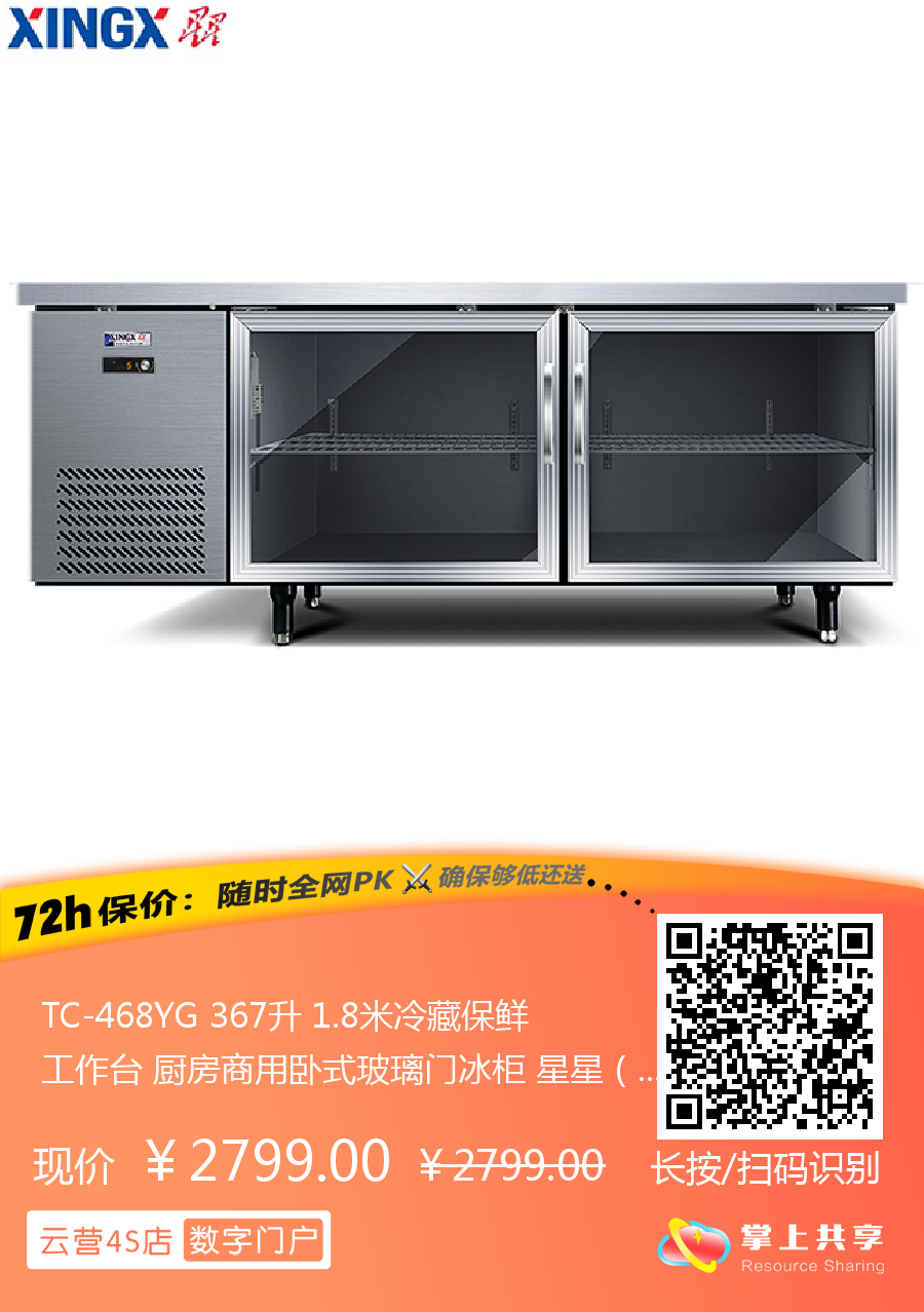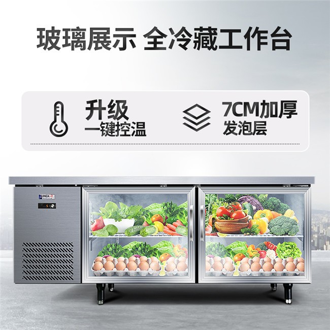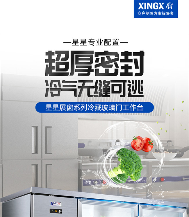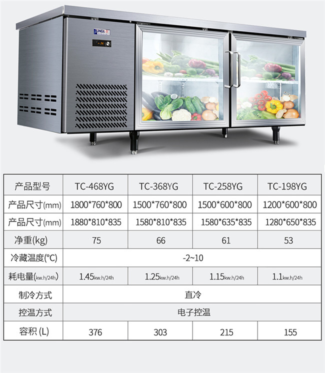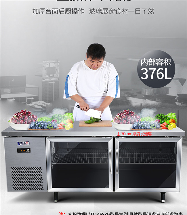 TC-468YG 367升 1.8米冷藏保鲜工作台 厨房商用卧式玻璃门冰柜 星星(XINGX)