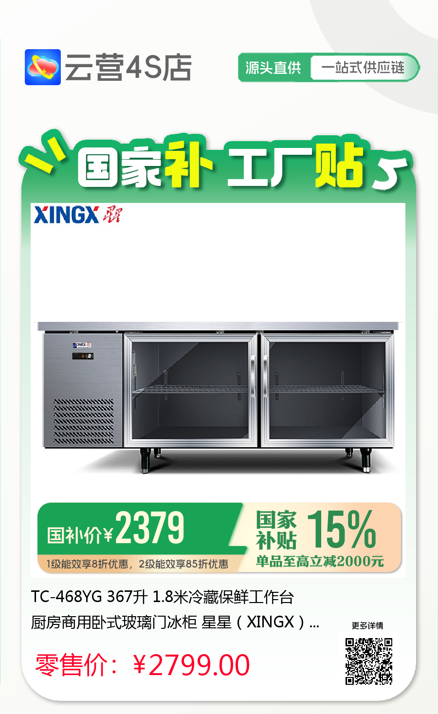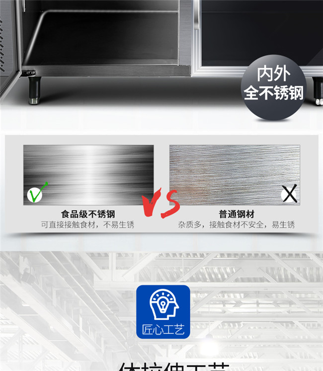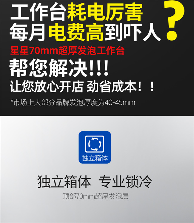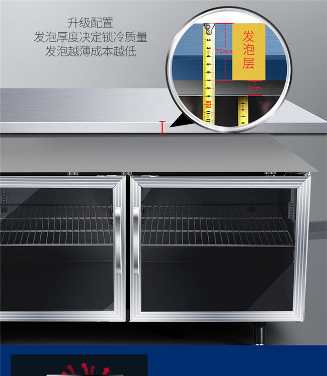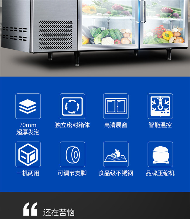 TC-468YG 367升 1.8米冷藏保鲜工作台 厨房商用卧式玻璃门冰柜 星星(XINGX)