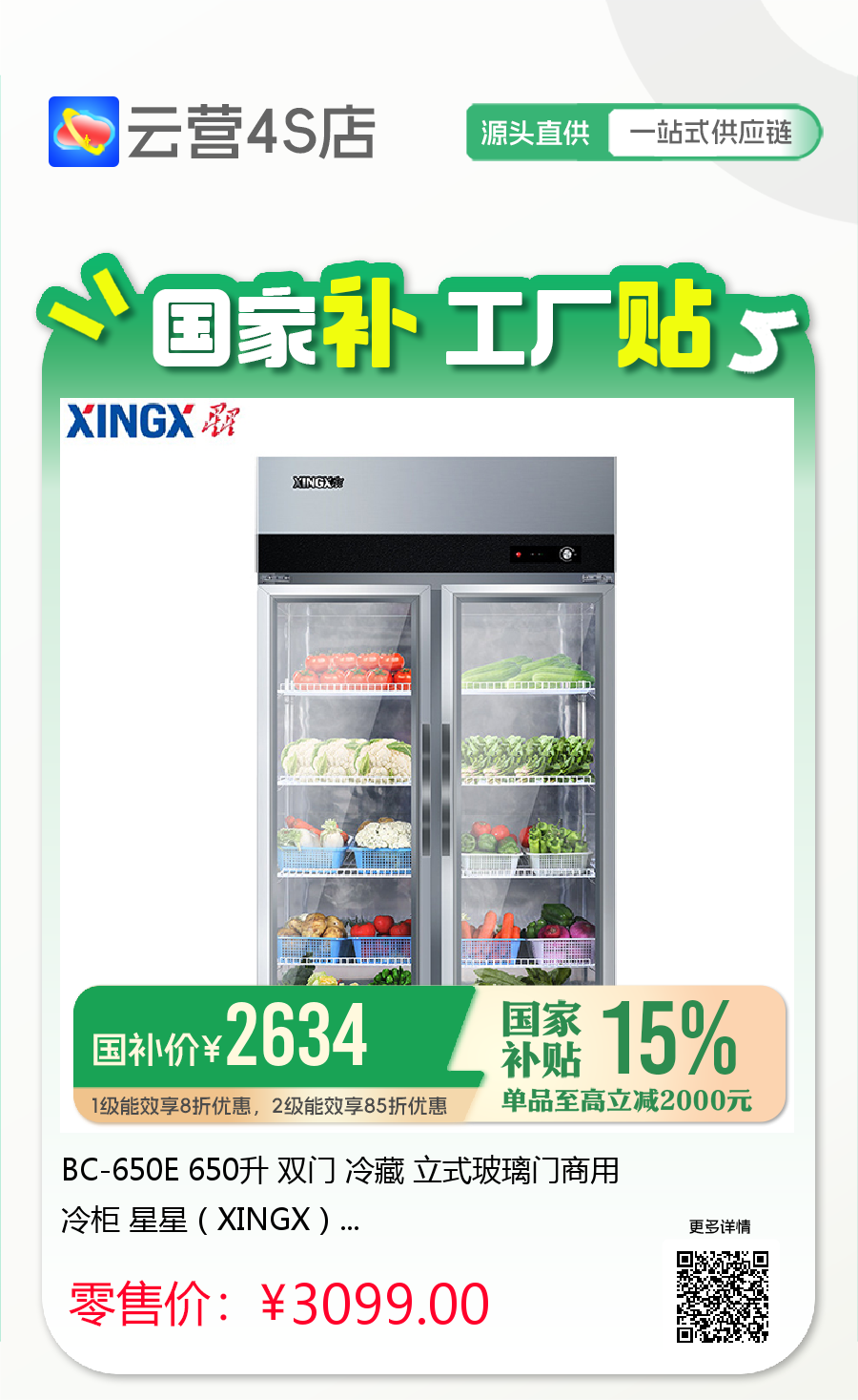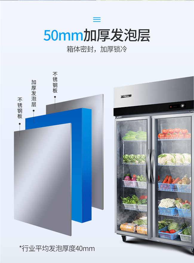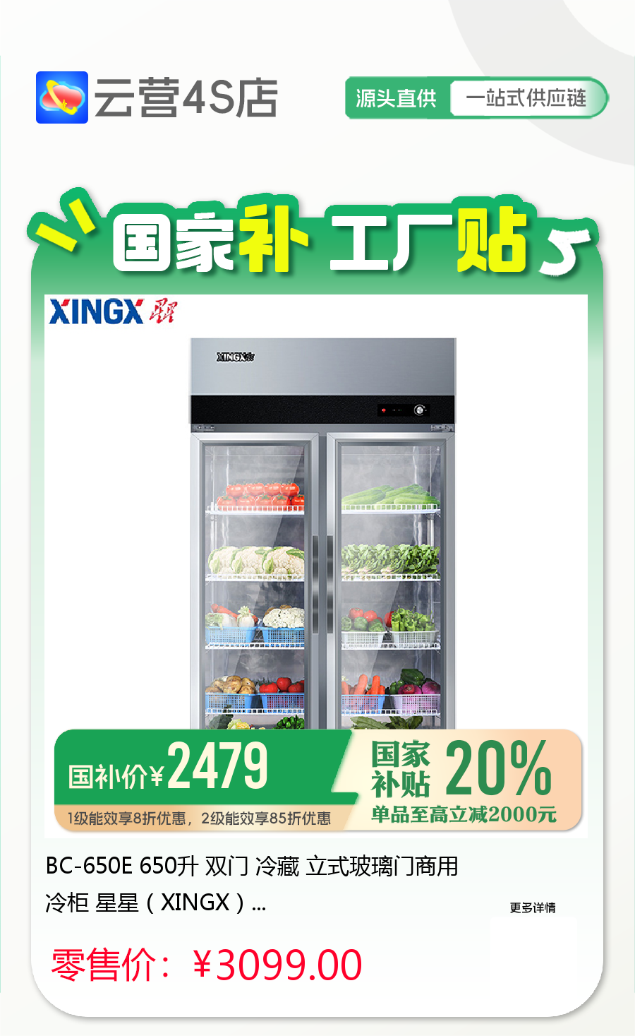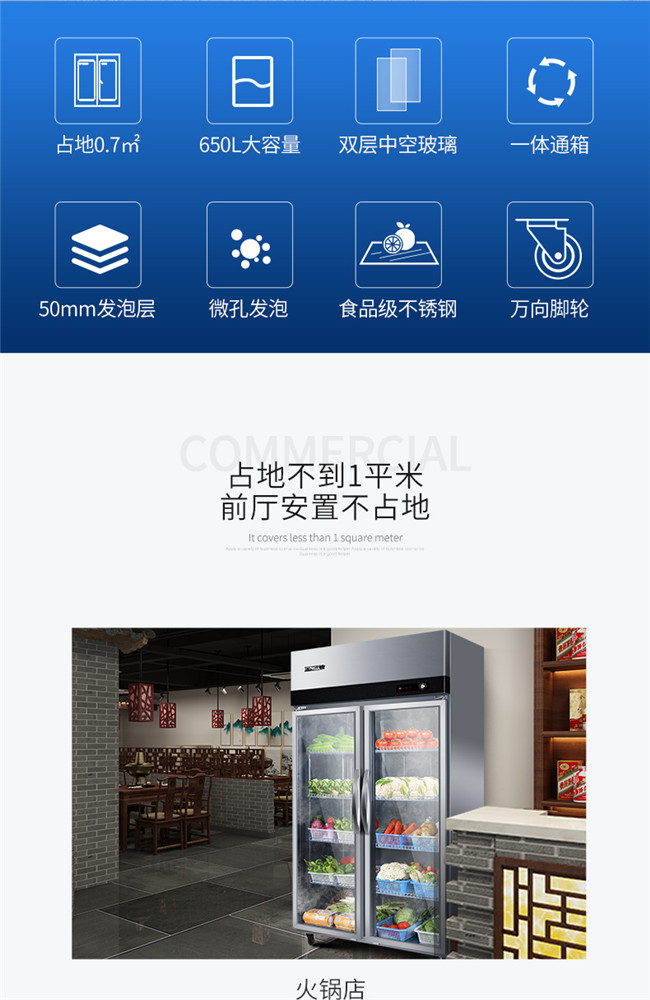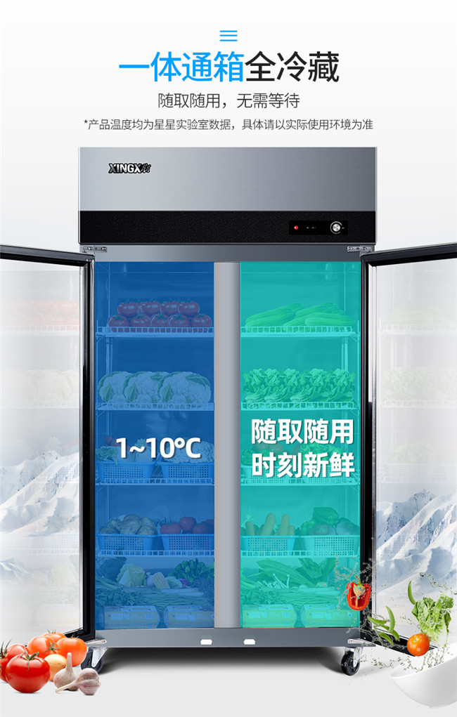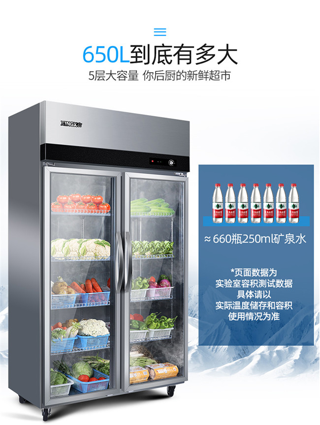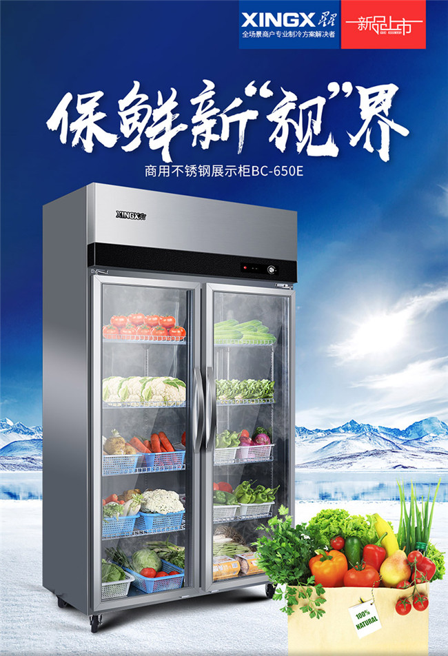 BC-650E 650升 双门 冷藏 立式玻璃门商用冷柜 星星(XINGX)