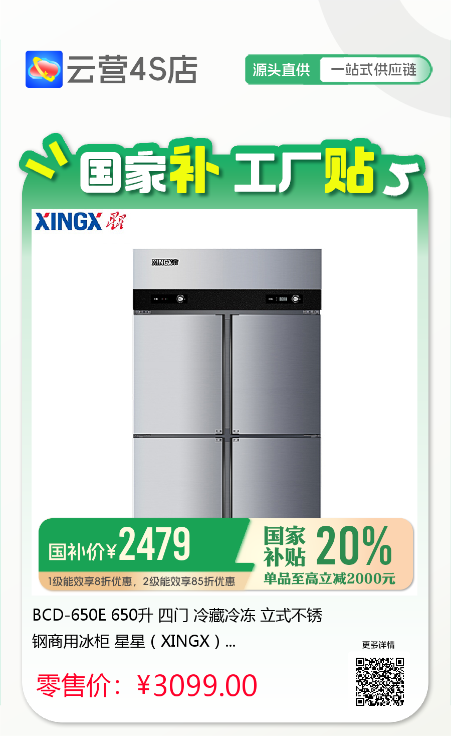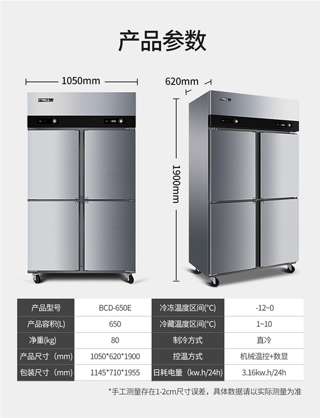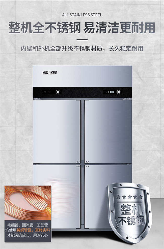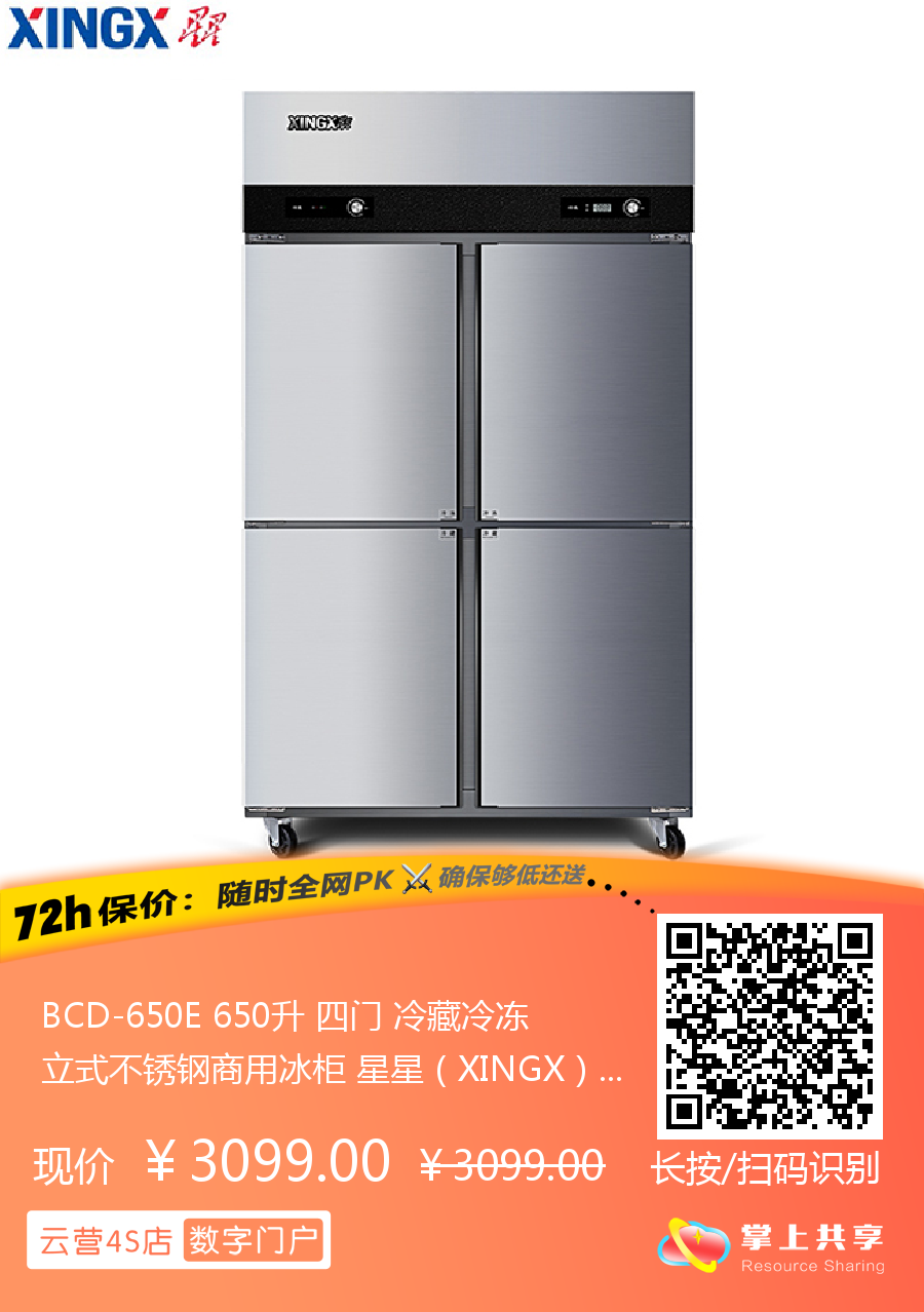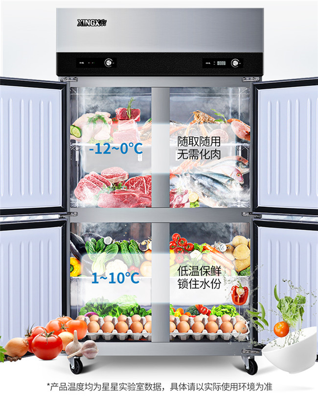 BCD-650E 650升 四门 冷藏冷冻 立式不锈钢商用冰柜 星星(XINGX)