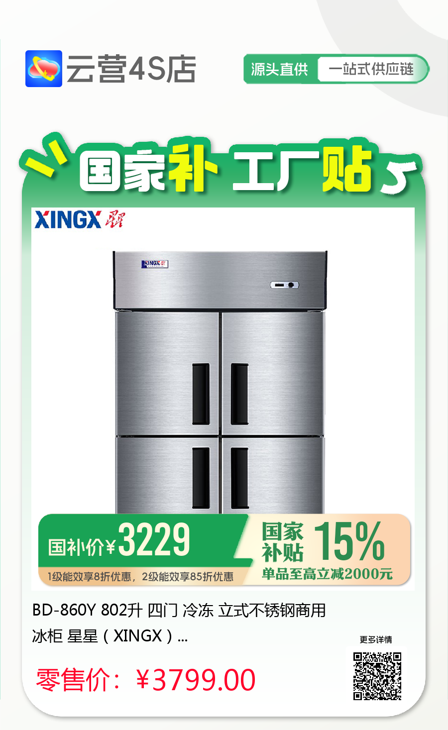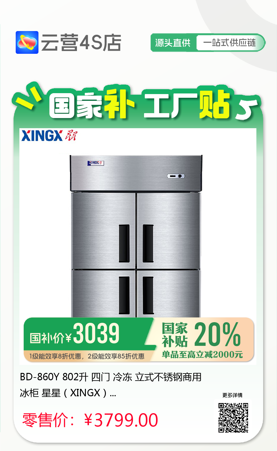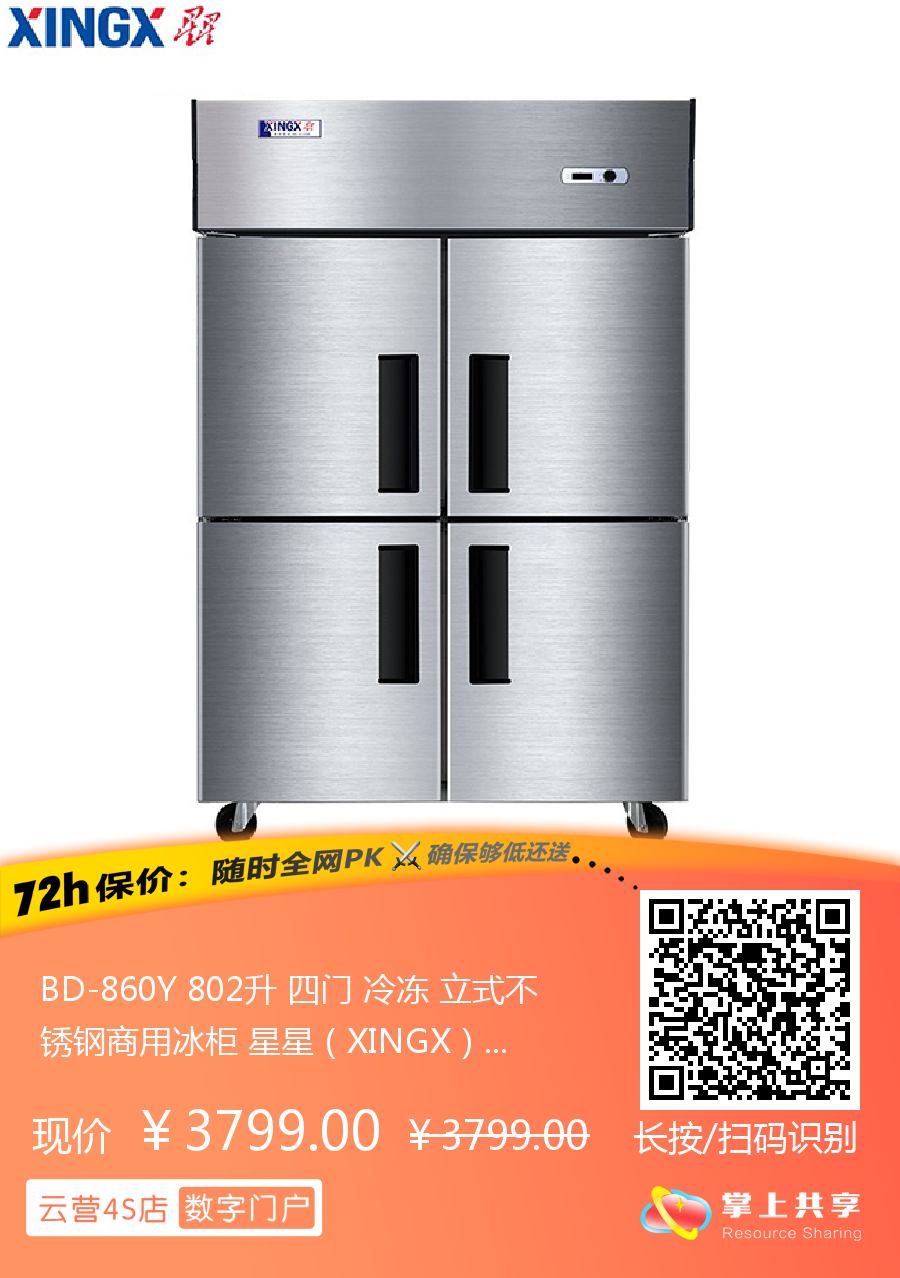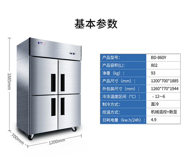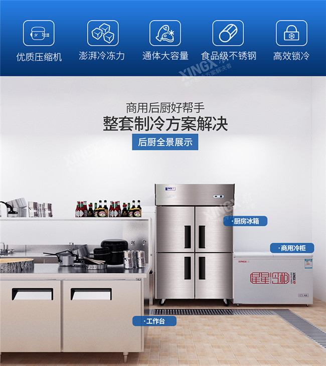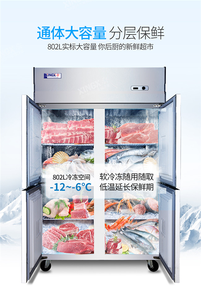 BD-860Y 802升 四门 冷冻 立式不锈钢商用冰柜 星星(XINGX)