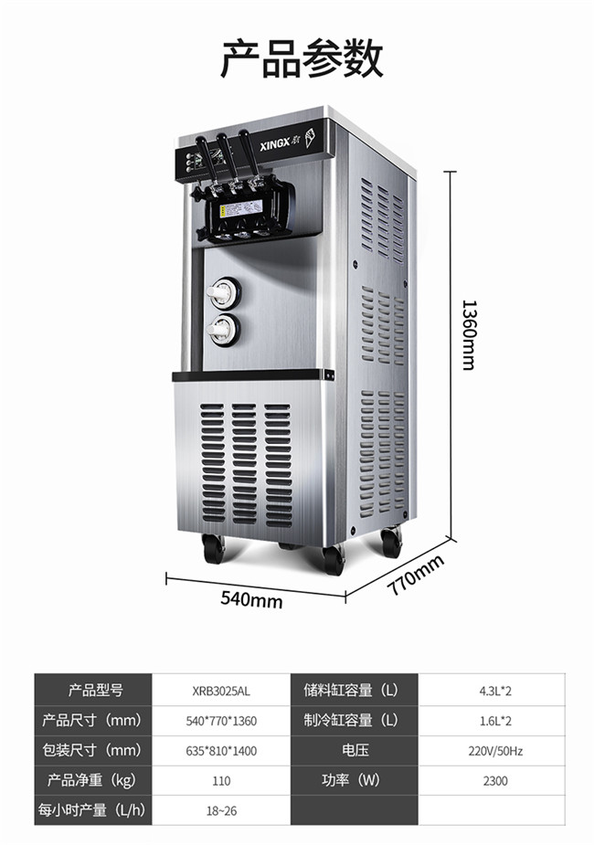 XRB-3025AL 18-26升/小时 商用台式小型雪糕机 全自动不锈钢冰淇淋机 星星(XINGX)