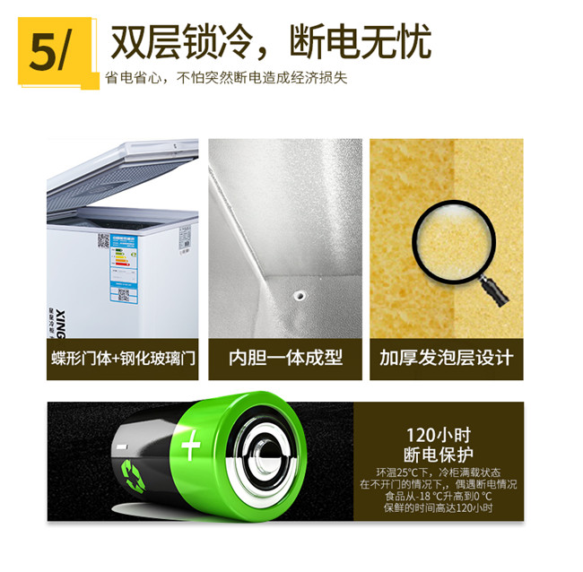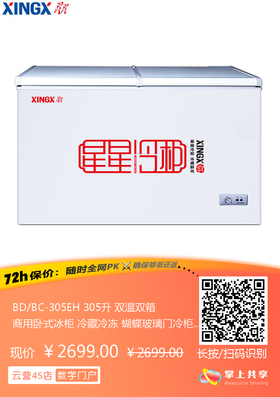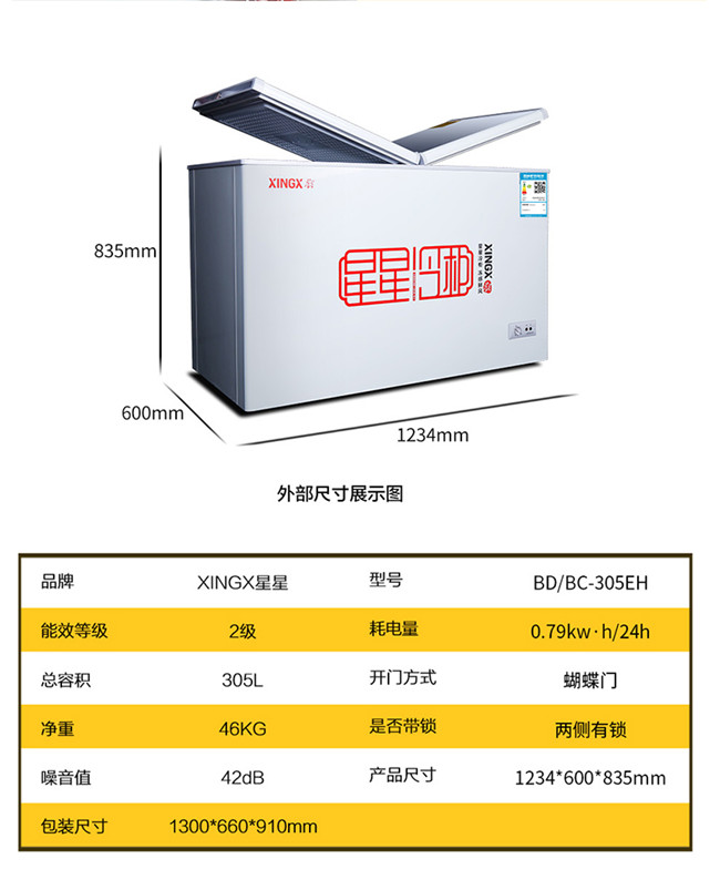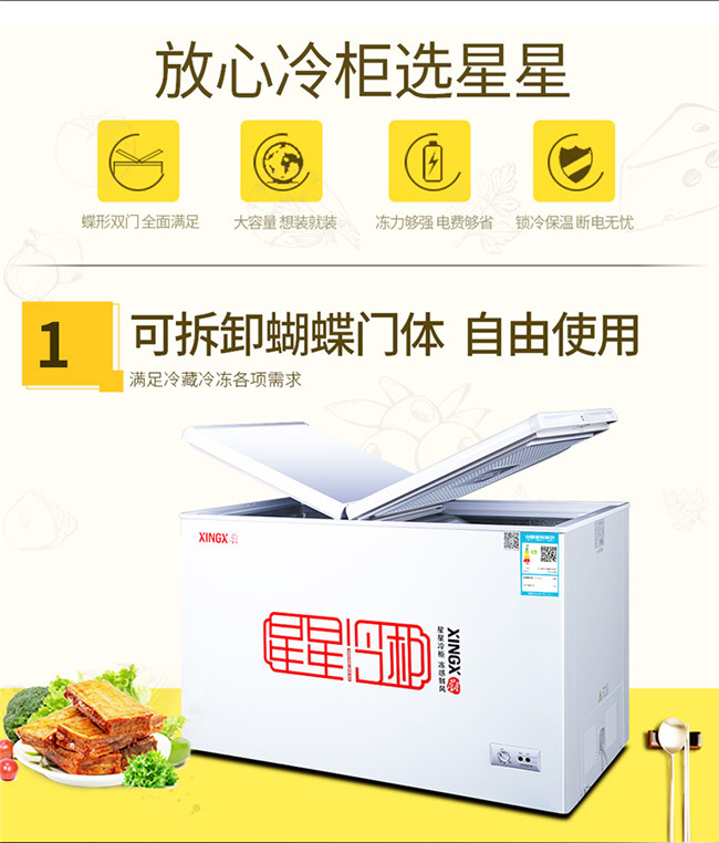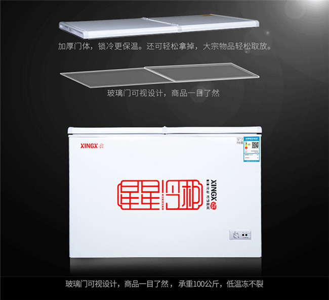 BD/BC-305EH 305升 双温双箱 商用卧式冰柜 冷藏冷冻 蝴蝶玻璃门冷柜 星星(XINGX)