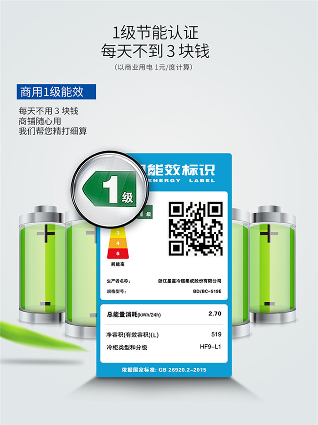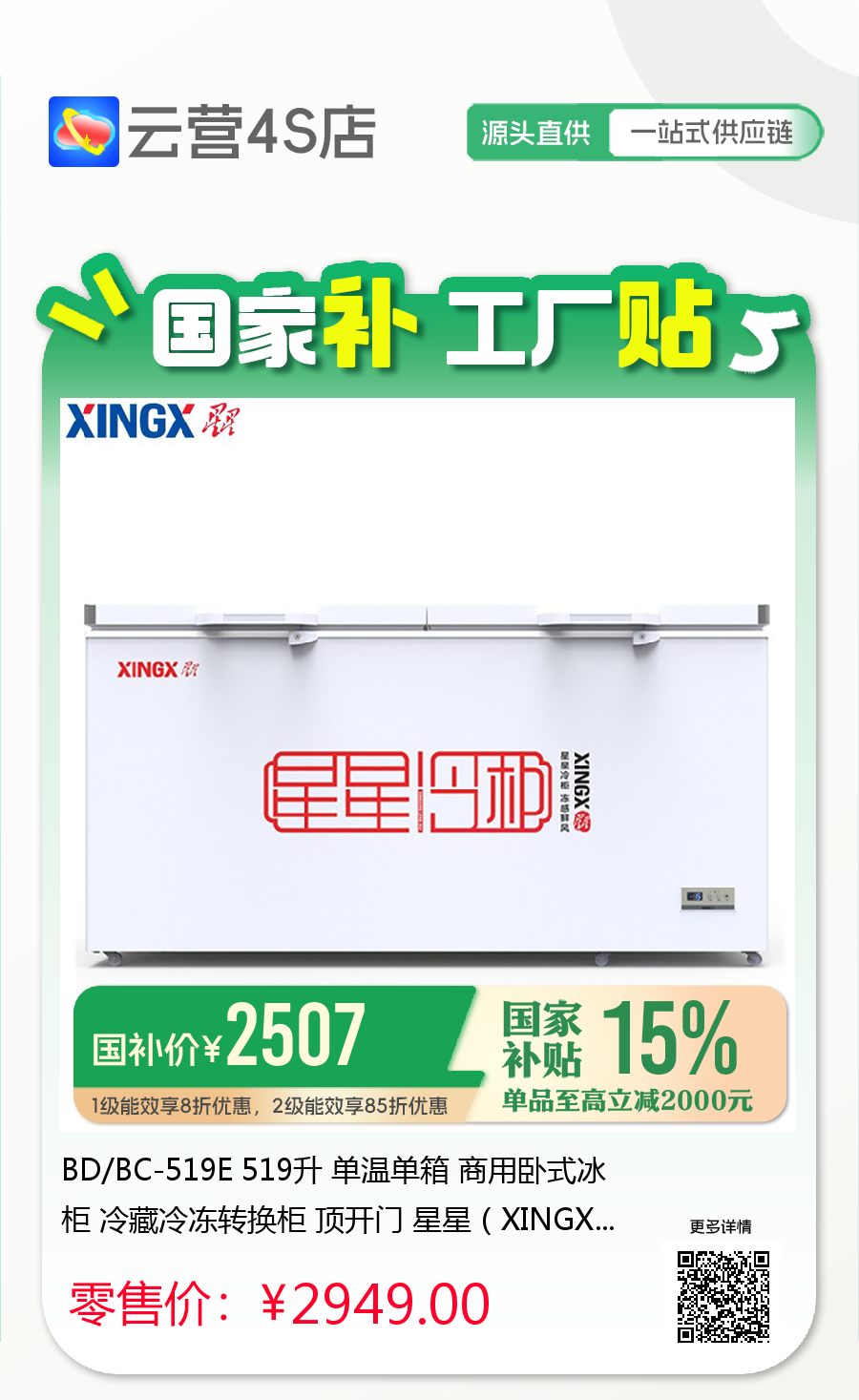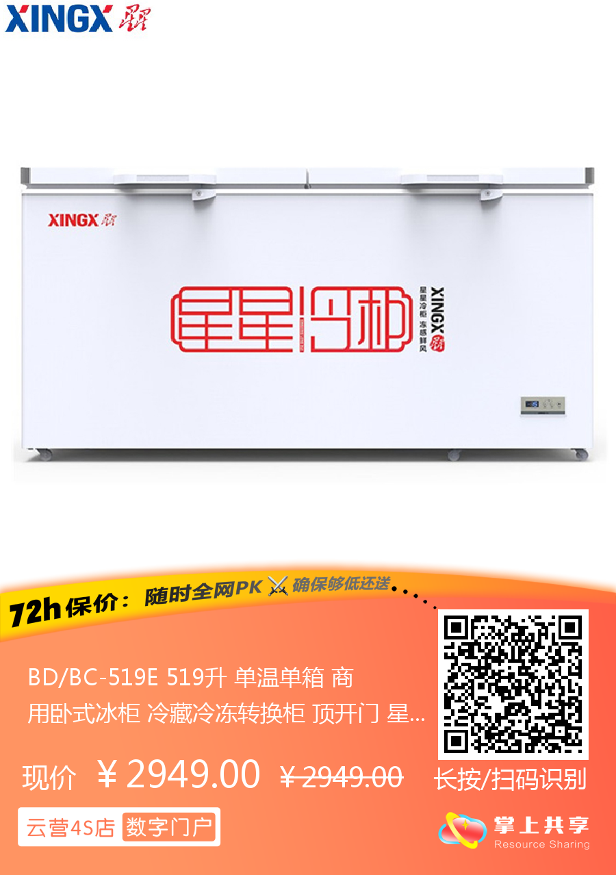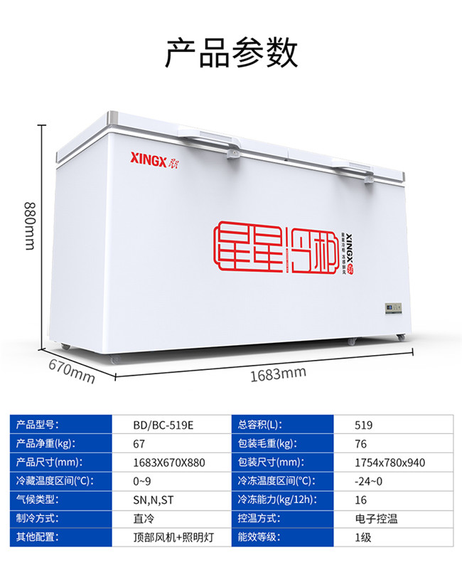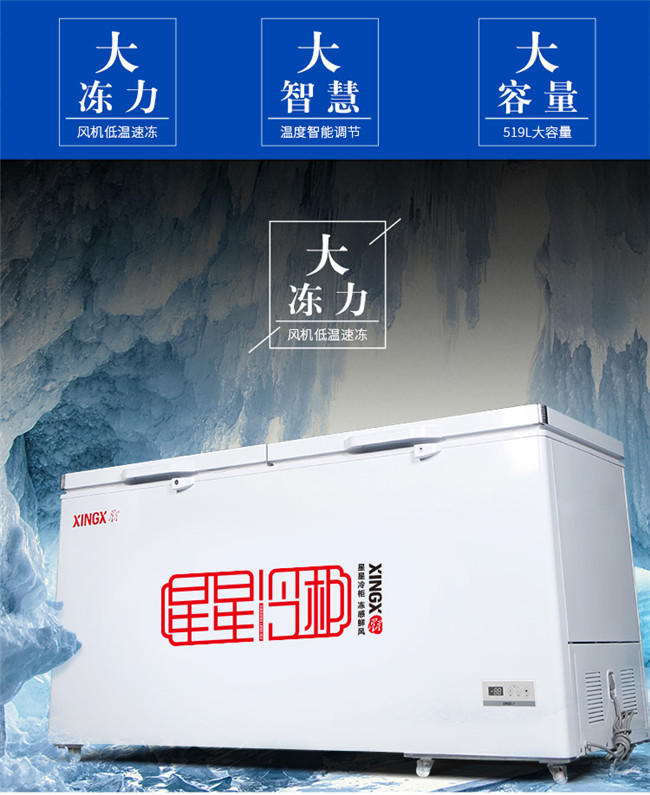 BD/BC-519E 519升 单温单箱 商用卧式冰柜 冷藏冷冻转换柜 顶开门 星星(XINGX)