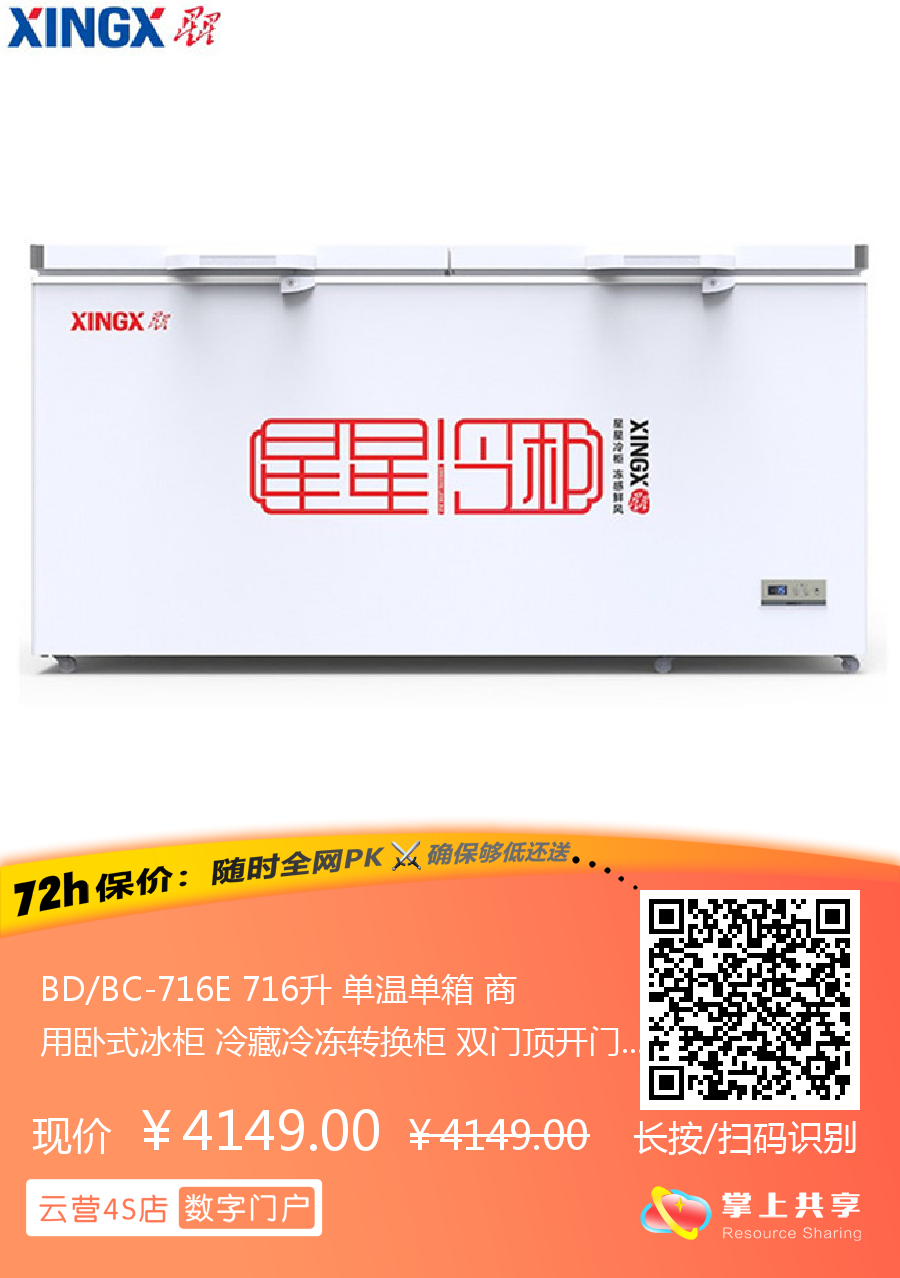 BD/BC-716E 716升 单温单箱 商用卧式冰柜 冷藏冷冻转换柜 双门顶开门 星星(XINGX)