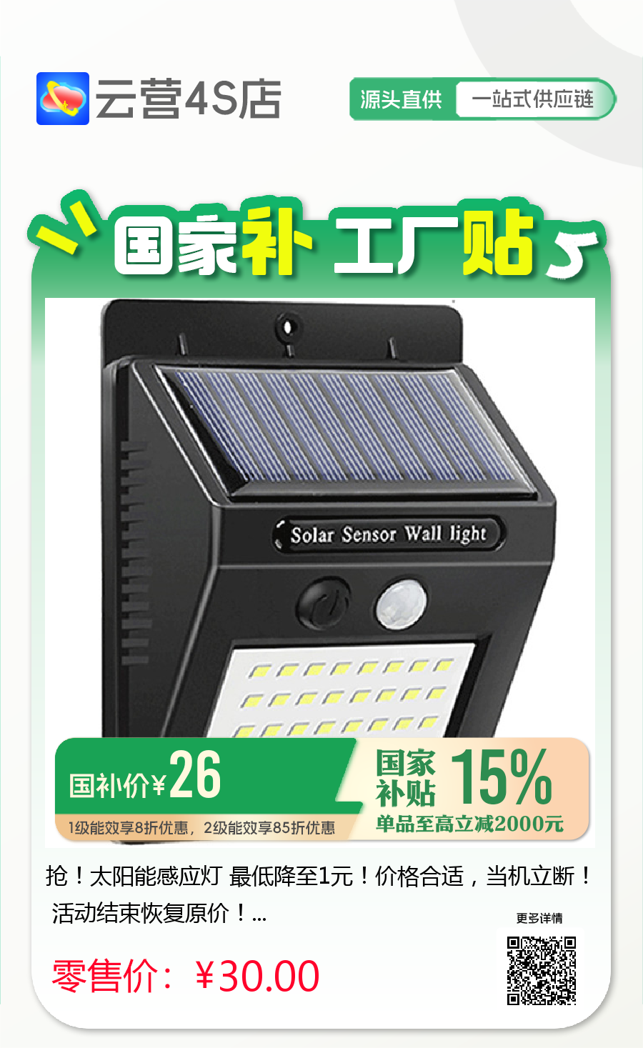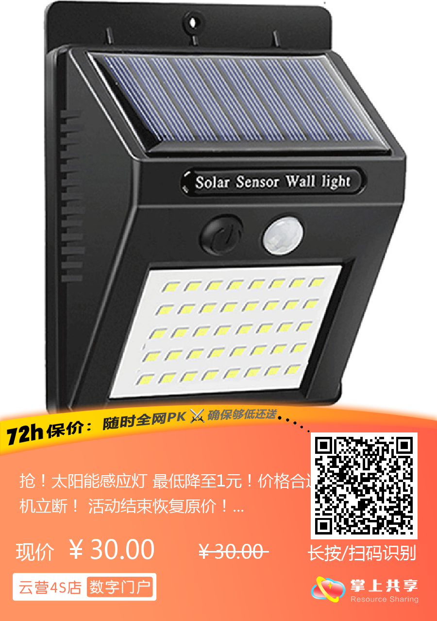 抢!太阳能感应灯 最低降至1元!价格合适,当机立断! 活动结束恢复原价!