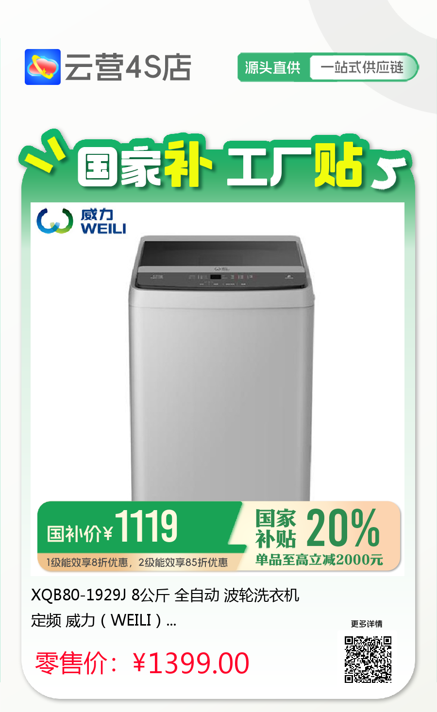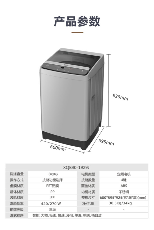 XQB80-1929J 8公斤 全自动 波轮洗衣机 定频 威力(WEILI)