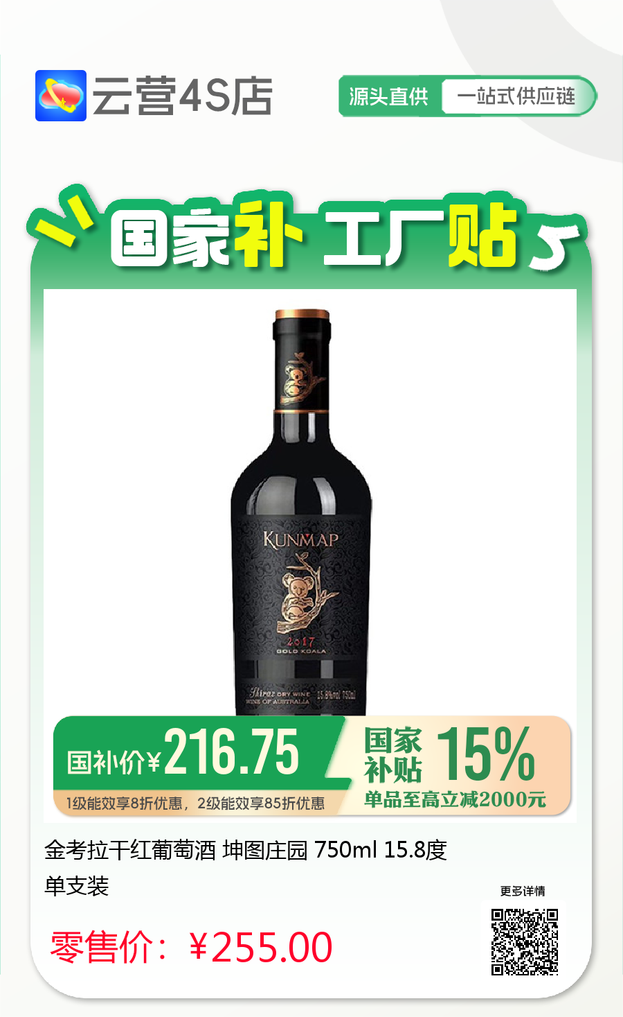 金考拉干红葡萄酒 坤图庄园 750ml 15.8度 单支装