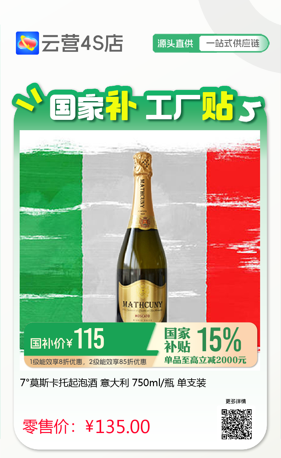 7°莫斯卡托起泡酒 意大利 750ml/瓶 单支装