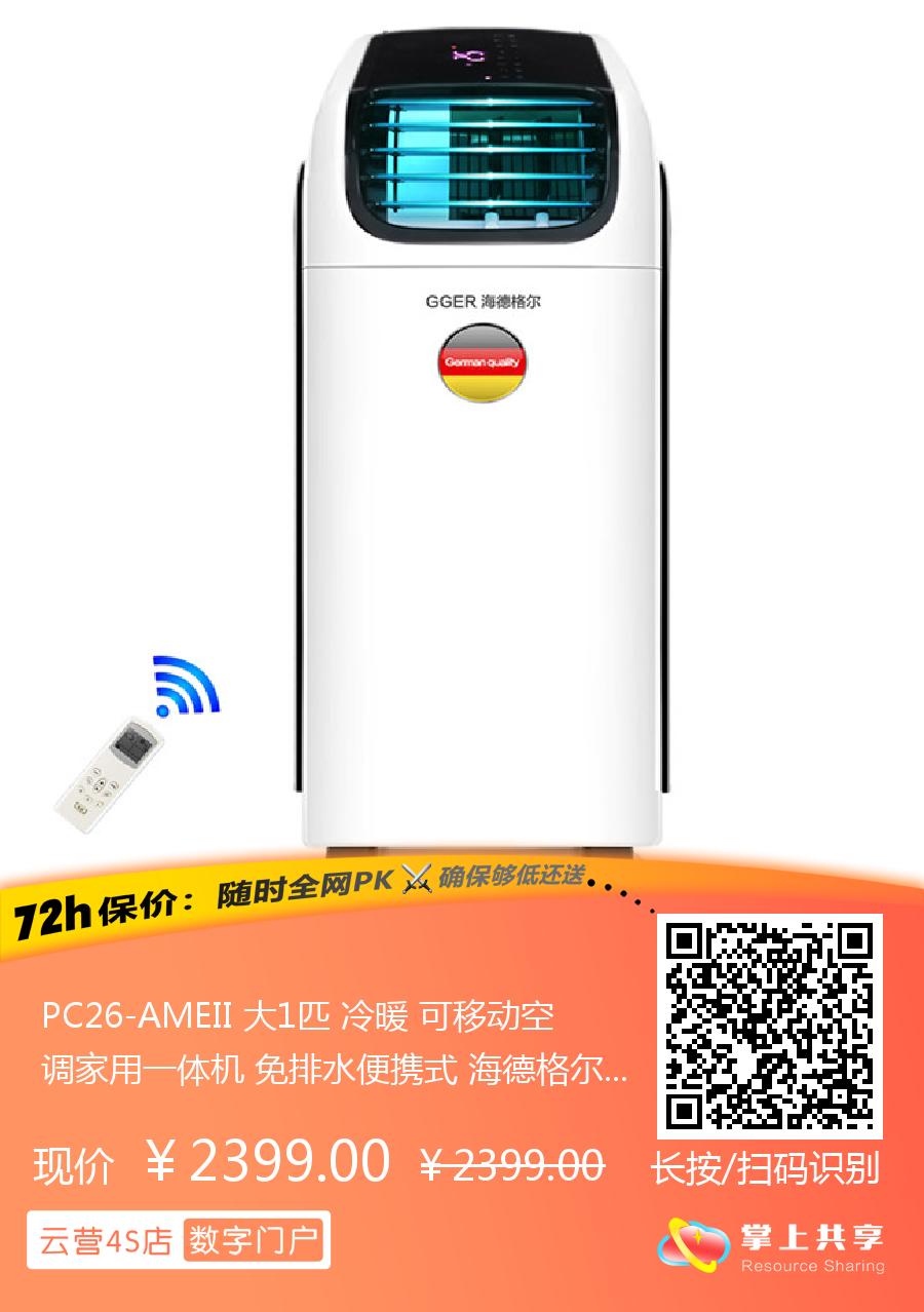 PC26-AMEII 大1匹 冷暖 可移动空调家用一体机 免排水便携式 海德格尔