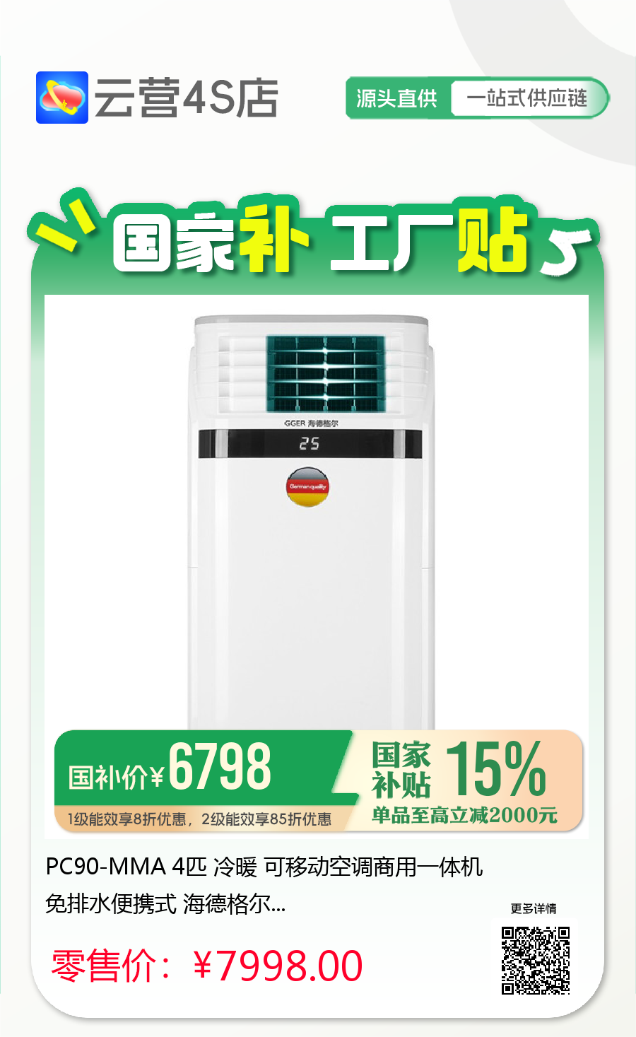 PC90-MMA 4匹 冷暖 可移动空调商用一体机 免排水便携式 海德格尔