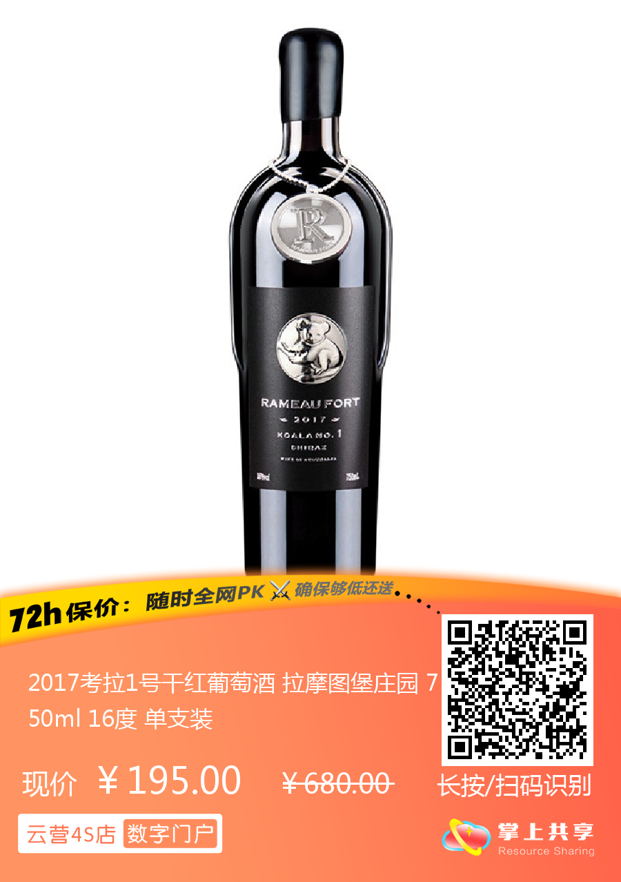2017考拉1号干红葡萄酒 拉摩图堡庄园 750ml 16度 单支装