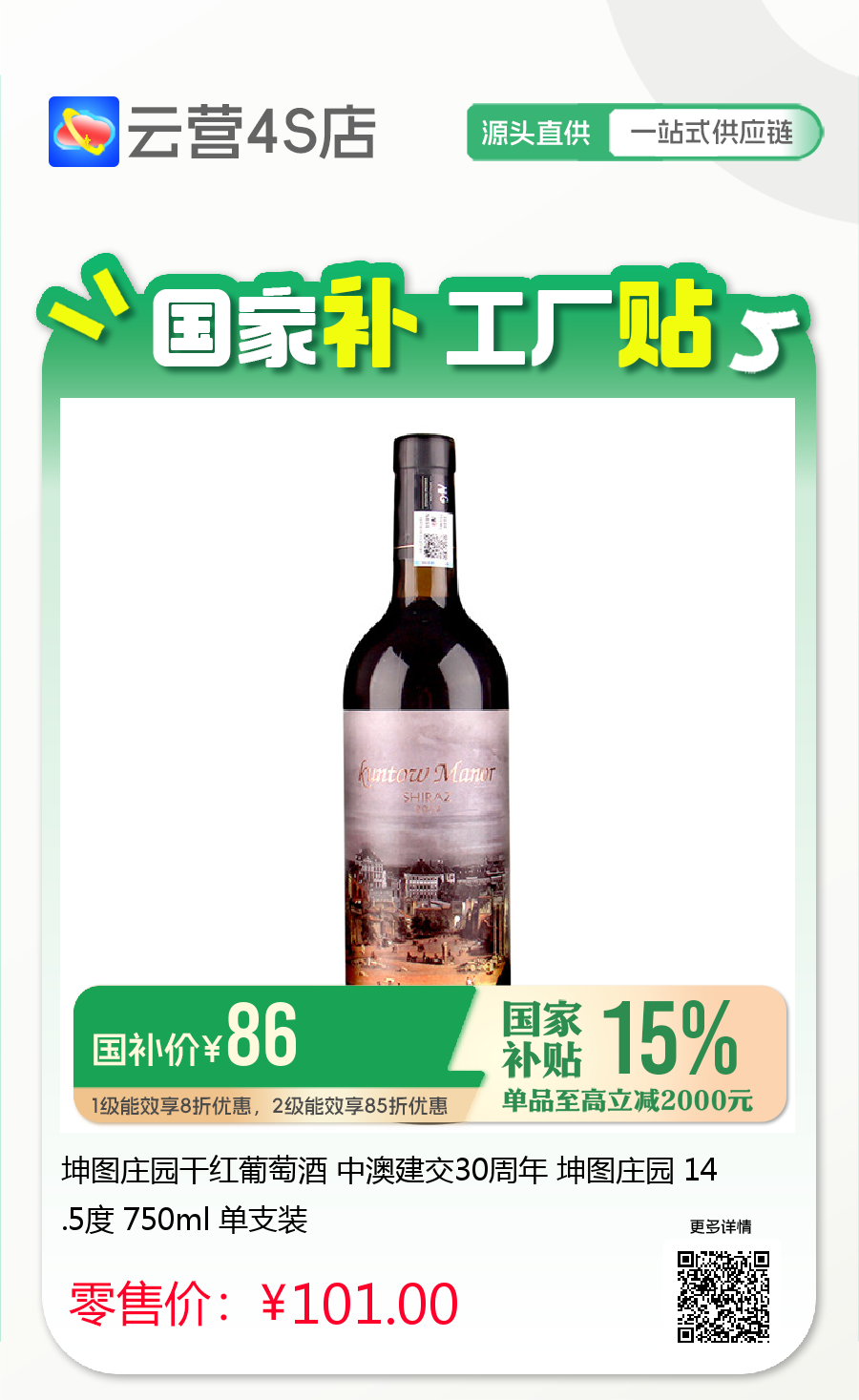 坤图庄园干红葡萄酒 中澳建交30周年 坤图庄园 14.5度 750ml 单支装