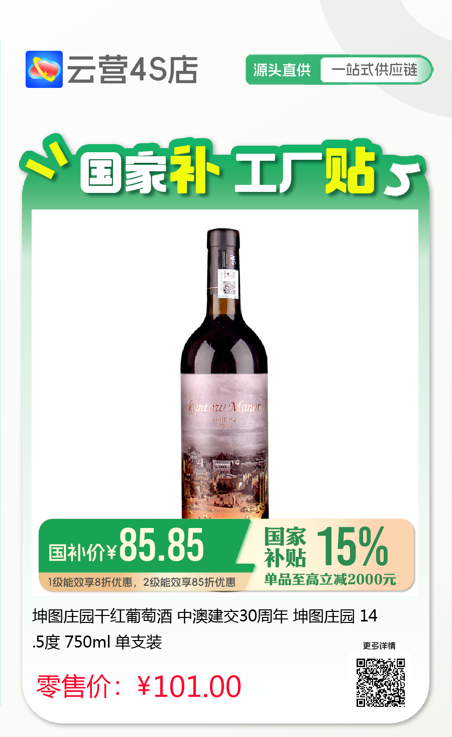 坤图庄园干红葡萄酒 中澳建交30周年 坤图庄园 14.5度 750ml 单支装
