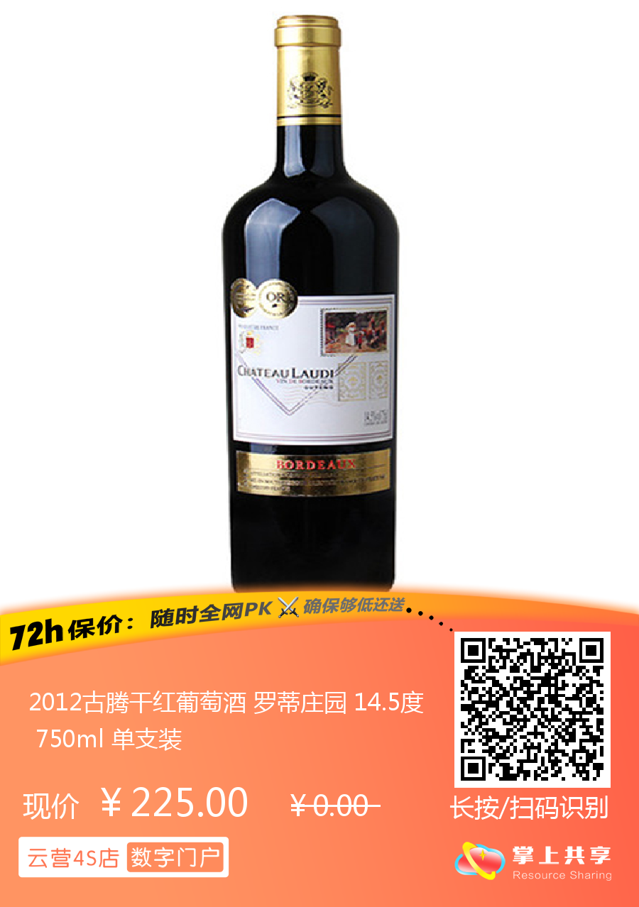 2012古腾干红葡萄酒 罗蒂庄园 14.5度 750ml 单支装