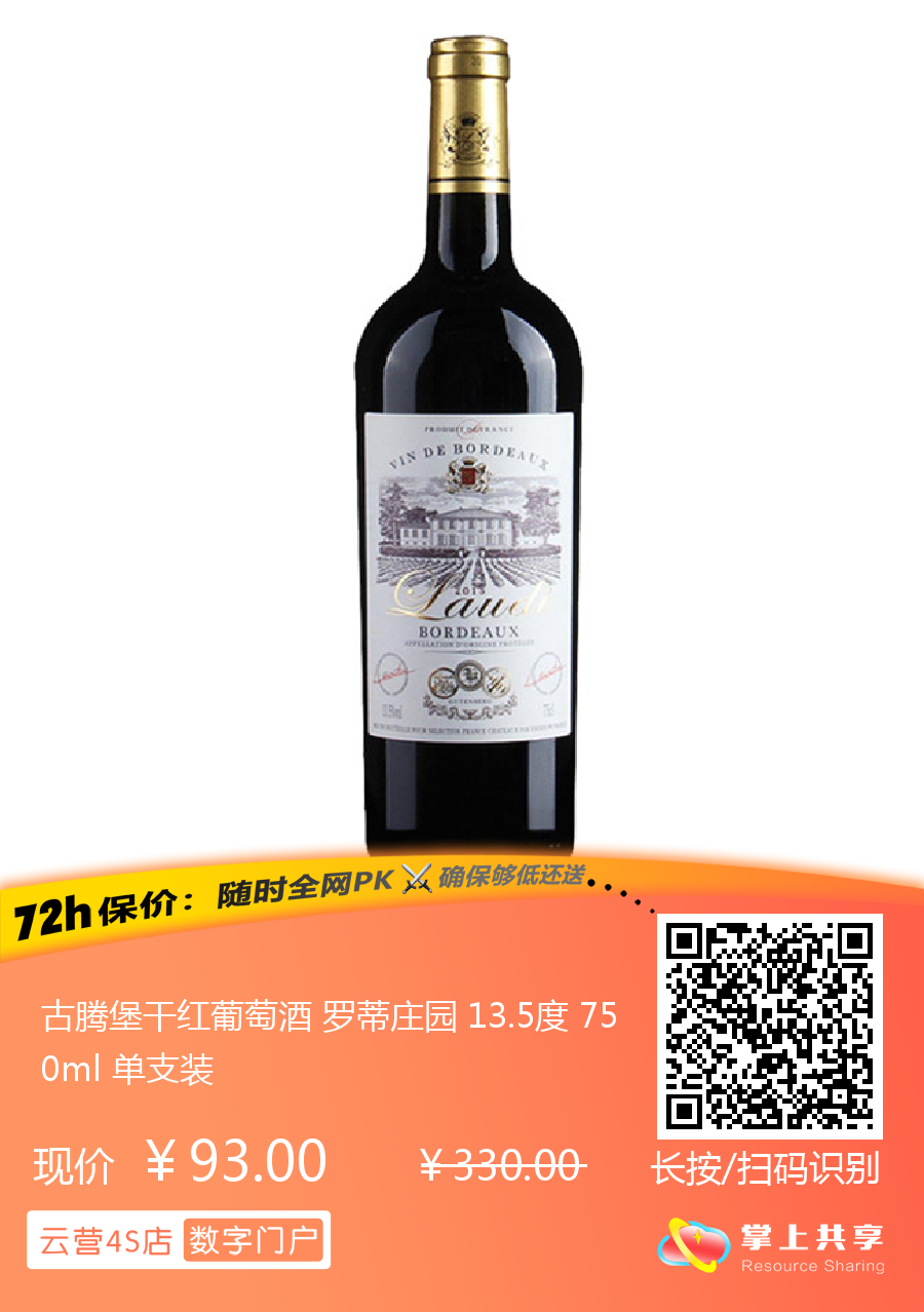 古腾堡干红葡萄酒 罗蒂庄园 13.5度 750ml 单支装