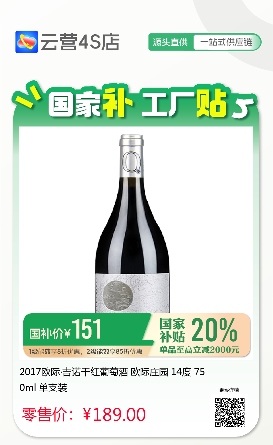 2017欧际·吉诺干红葡萄酒 欧际庄园 14度 750ml 单支装