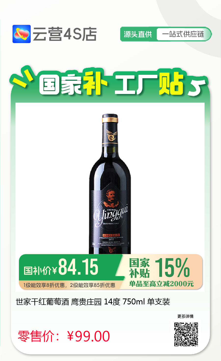 世家干红葡萄酒 鹰贵庄园 14度 750ml 单支装