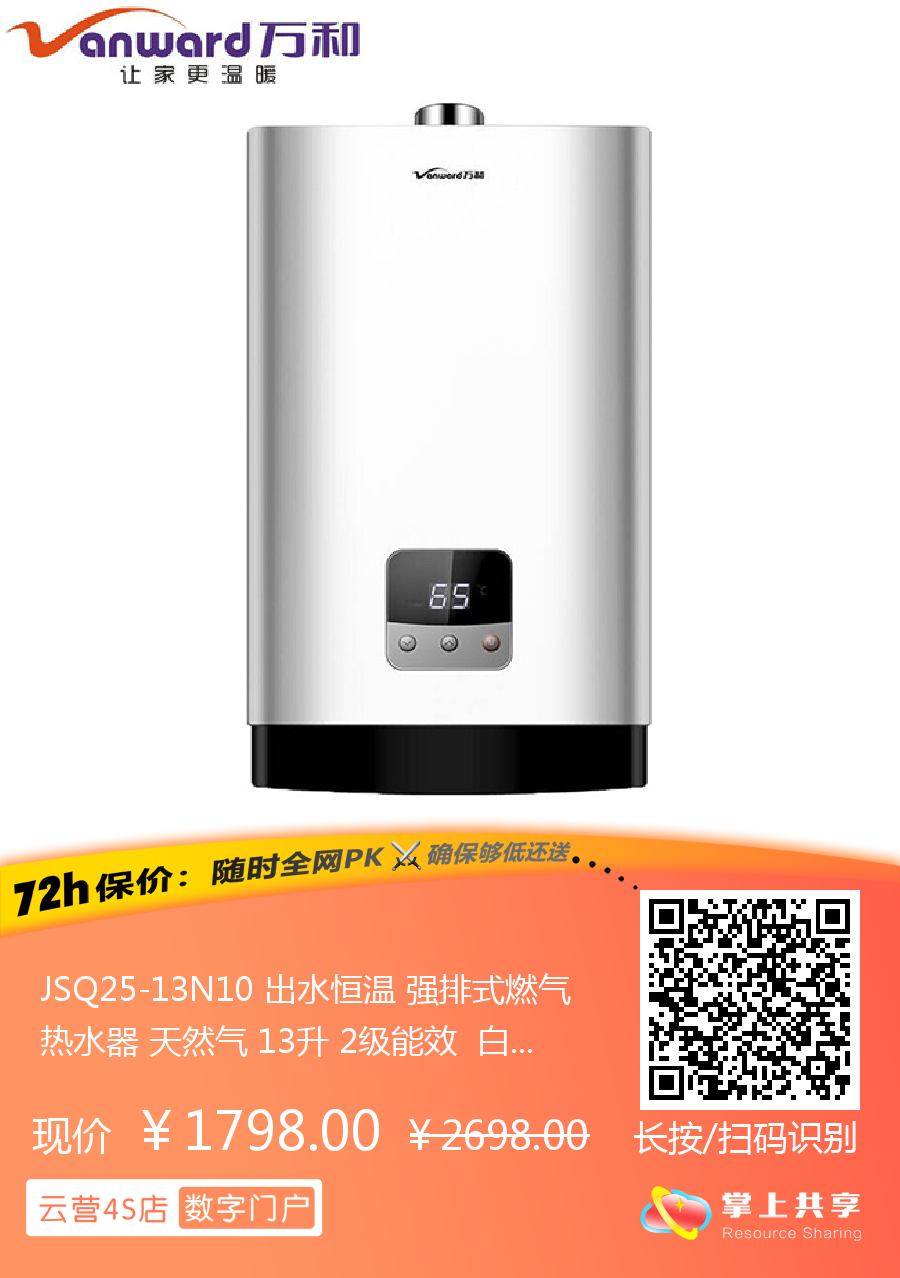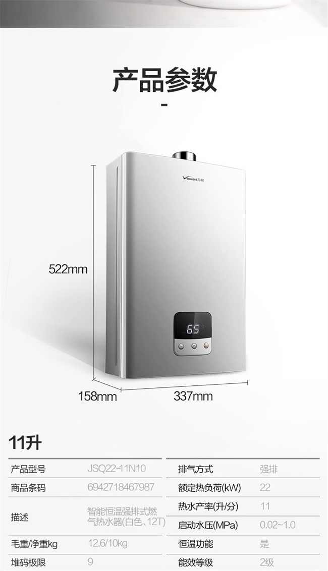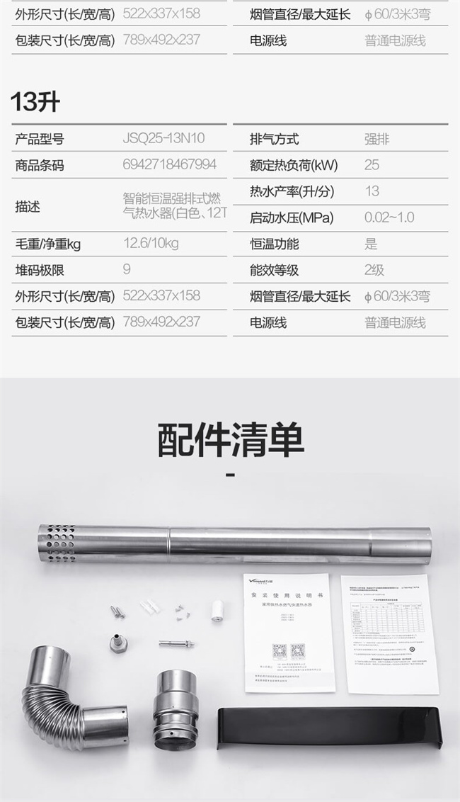 JSQ25-13N10 出水恒温 强排式燃气热水器 天然气 13升 2级能效 白