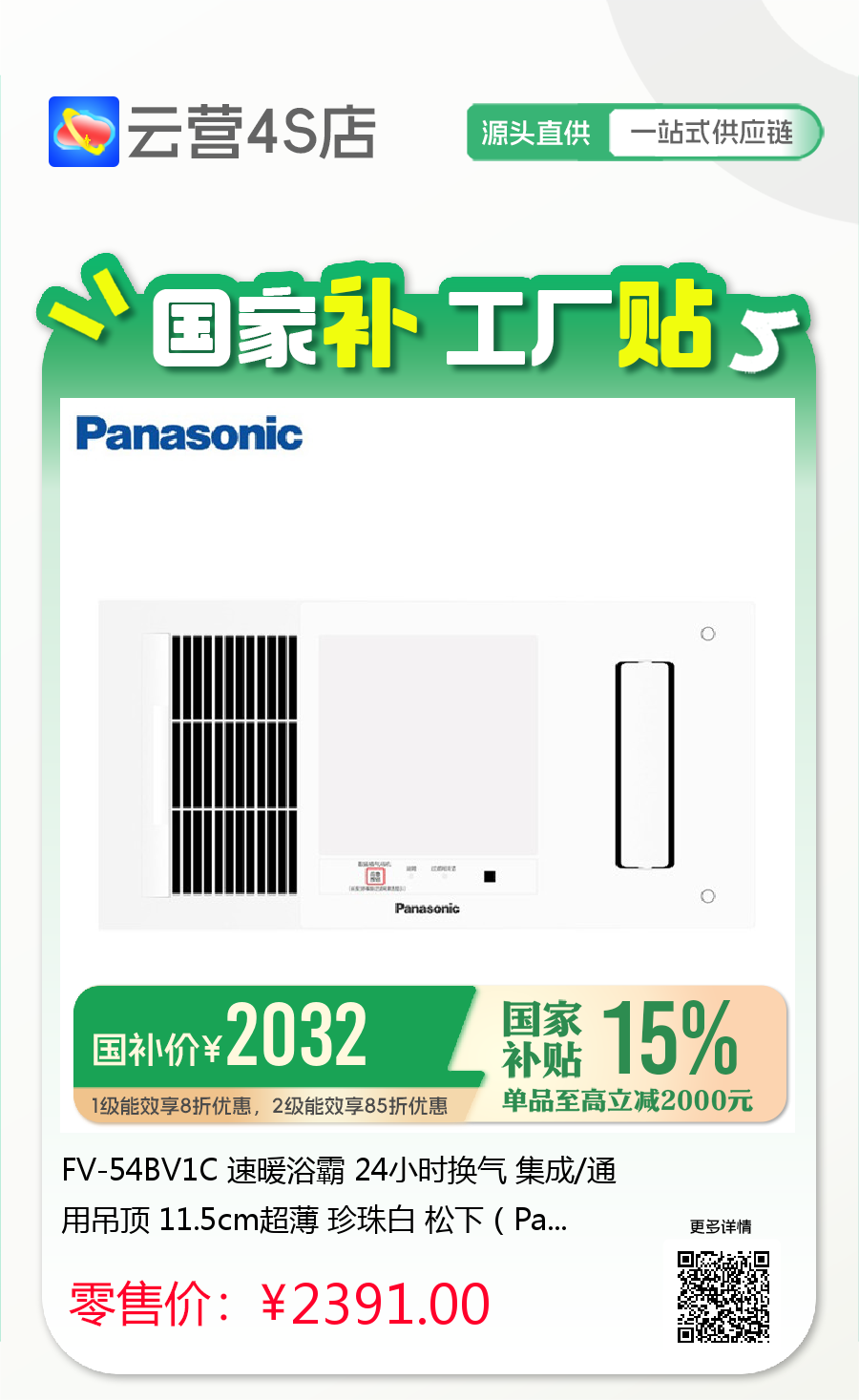 FV-54BV1C 速暖浴霸 24小时换气 集成/通用吊顶 11.5cm超薄 珍珠白 松下(Panasonic)