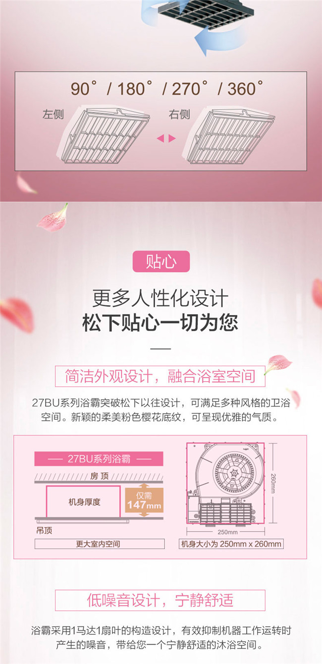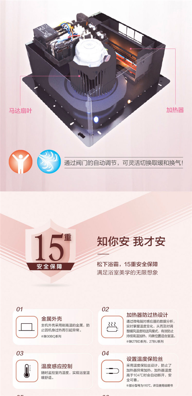 PTC陶瓷加热,有效速暖,多角度送风,自由组合暖风方向,147mm薄型机身