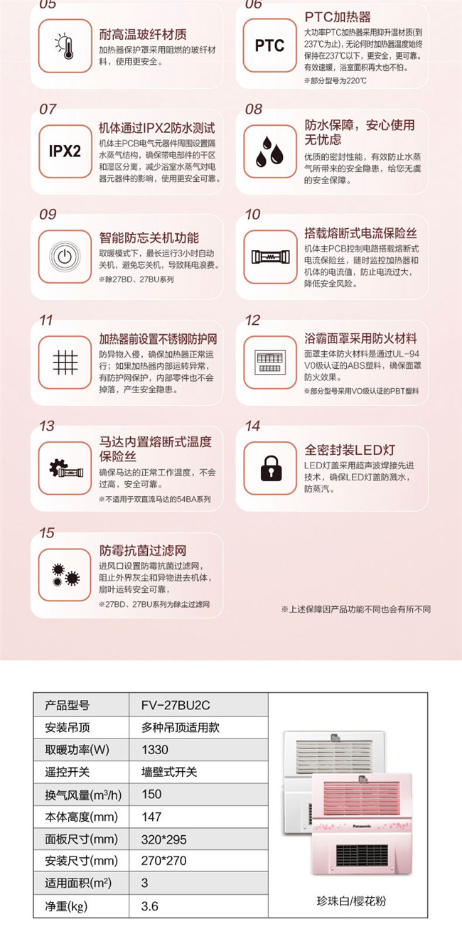 FV-27BU2C 取暖浴霸 通用吊顶 多角度送风 松下(Panasonic)