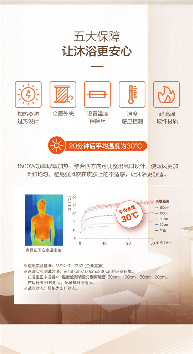 机身厚度仅需147mm 20分钟后平均温度可达30°C 墙壁式开关防水保障使用无忧
