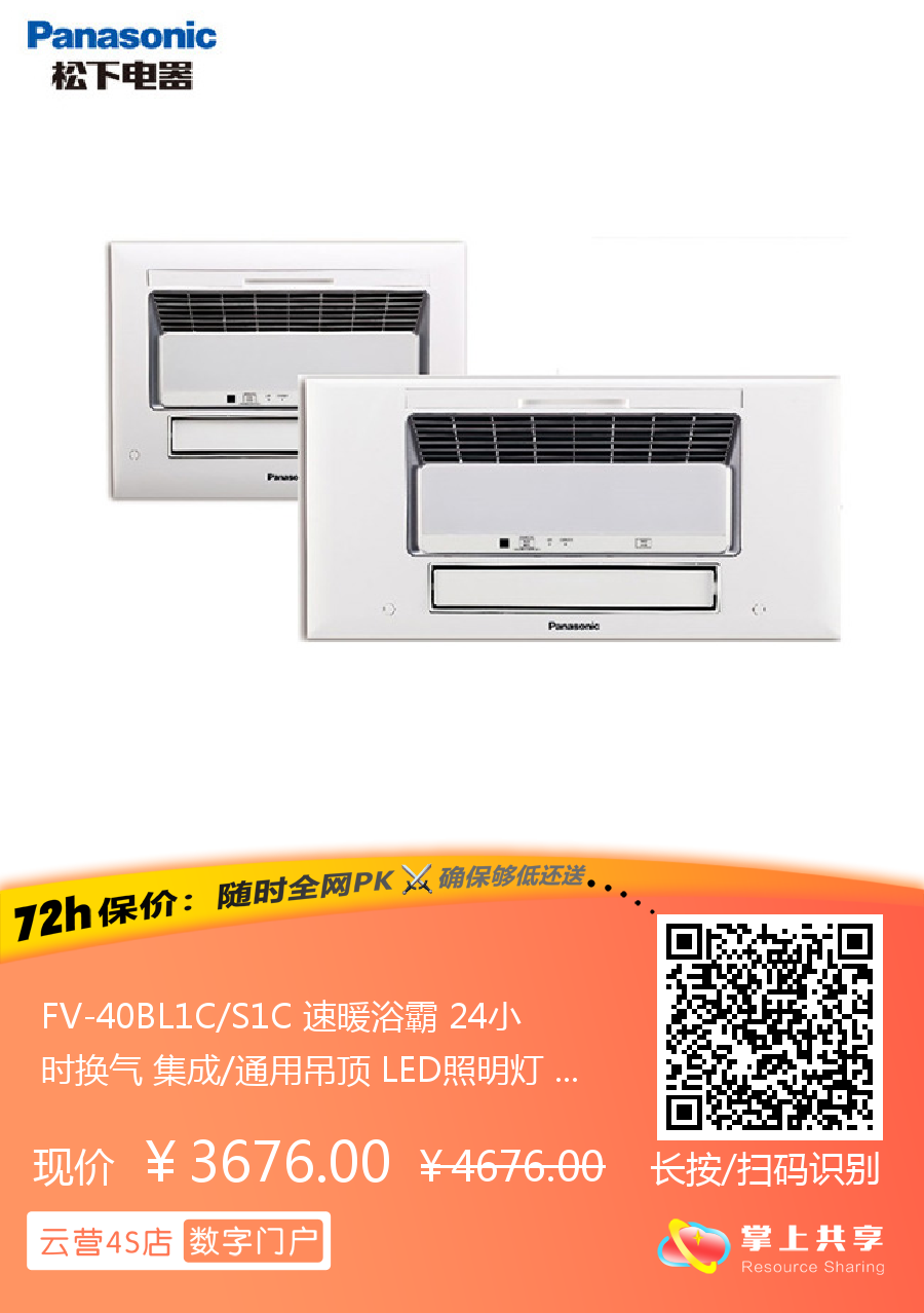 FV-40BL1C/S1C 速暖浴霸 24小时换气 集成/通用吊顶 LED照明灯 松下(Panasonic)
