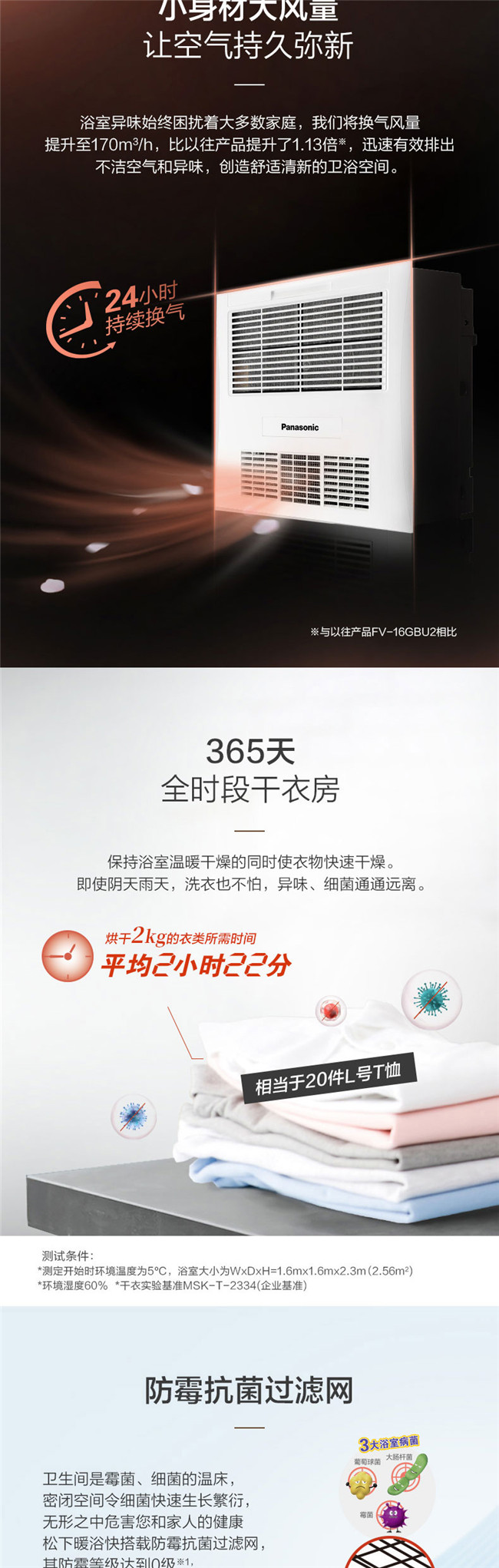 1650w速暖 凉/热干燥功能快速干衣 170m³/h大风量换气
