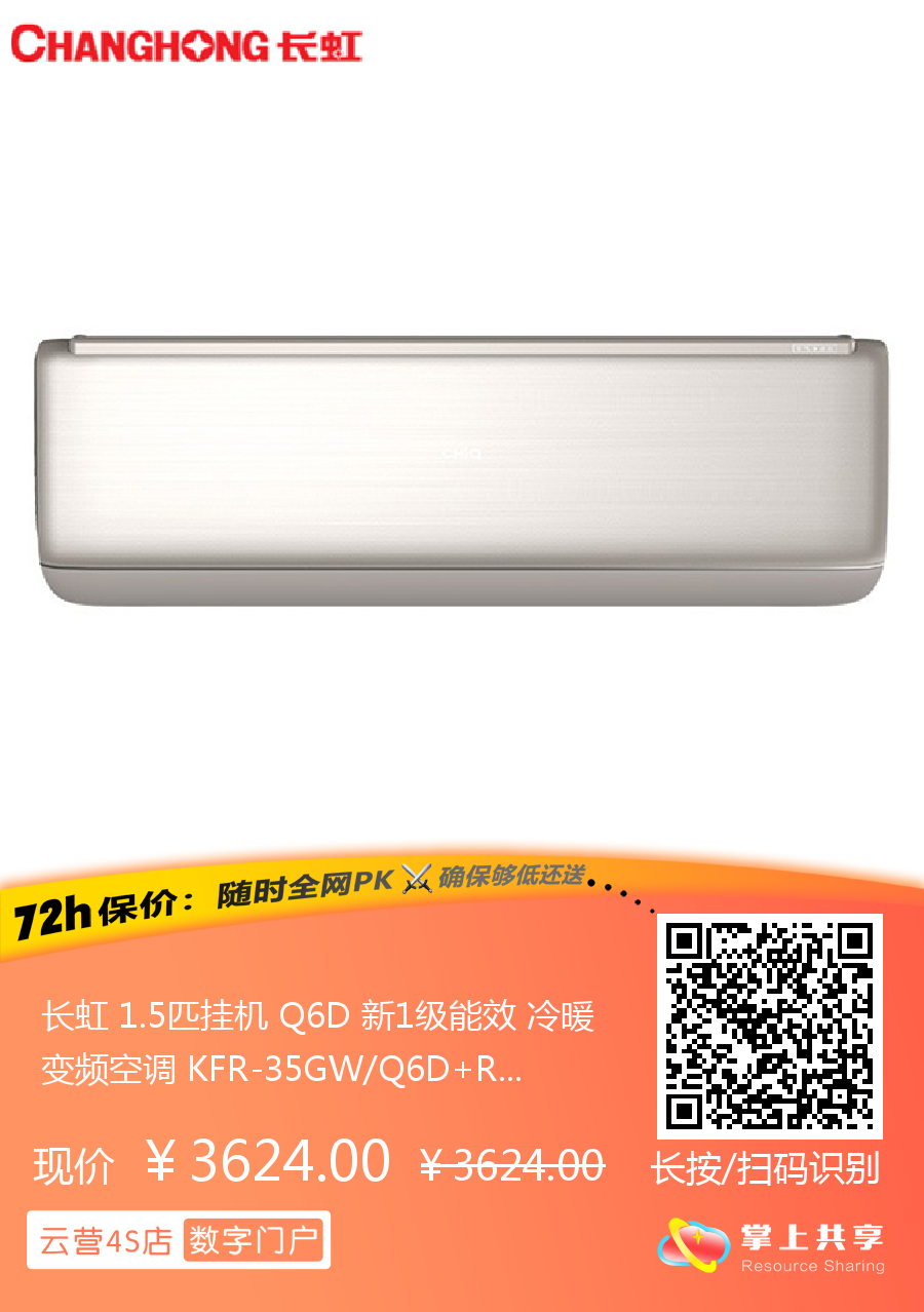 长虹 1.5匹挂机 Q6D 新1级能效 冷暖变频空调 KFR-35GW/Q6D+R1