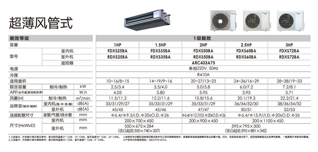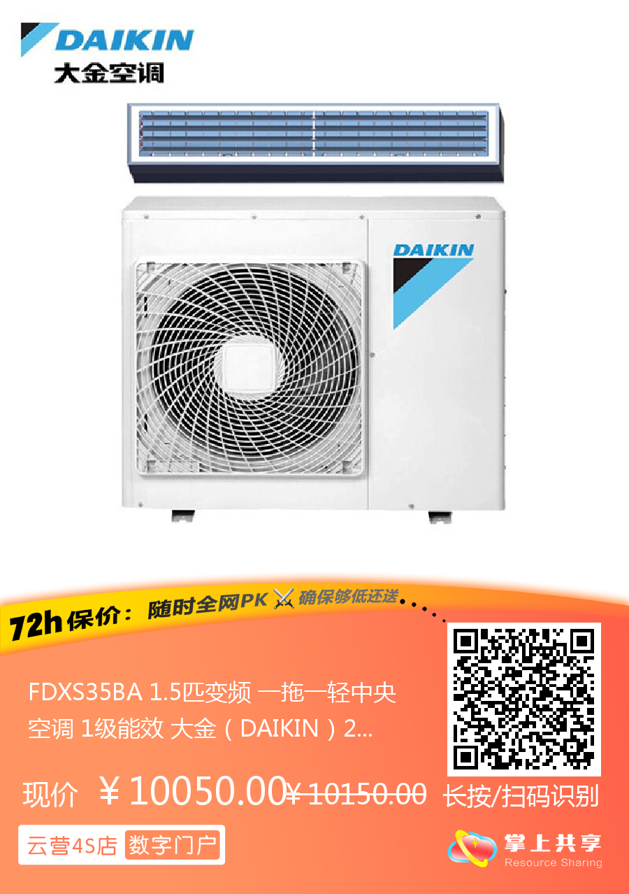 FDXS35BA 1.5匹变频 一拖一轻中央空调 1级能效 大金(DAIKIN)20cm超薄 遥控 带WIFI
