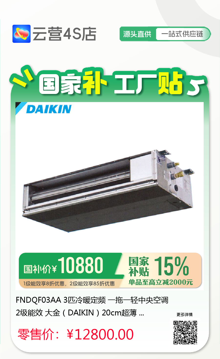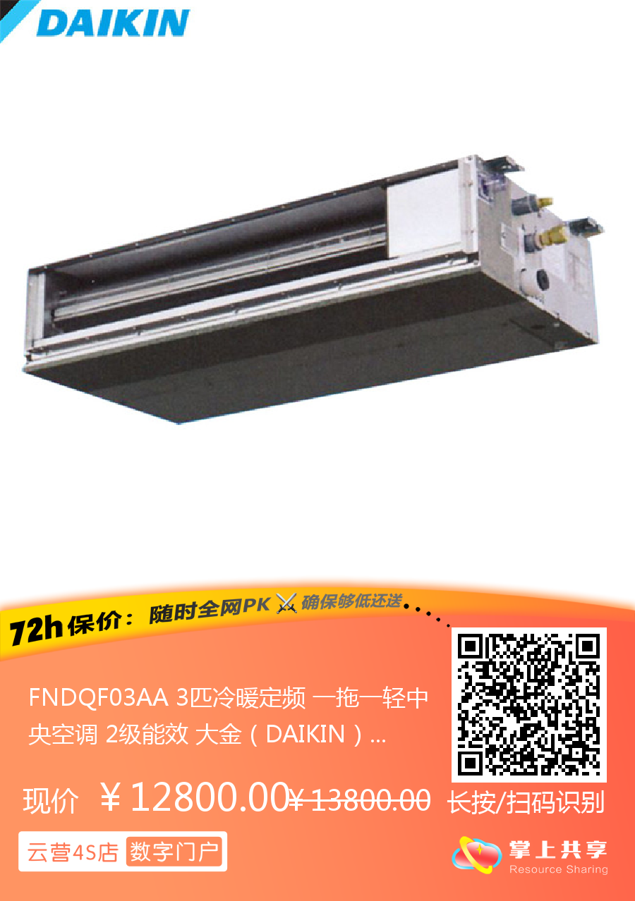 FNDQF03AA 3匹冷暖定频 一拖一轻中央空调 2级能效 大金(DAIKIN)20cm超薄 遥控