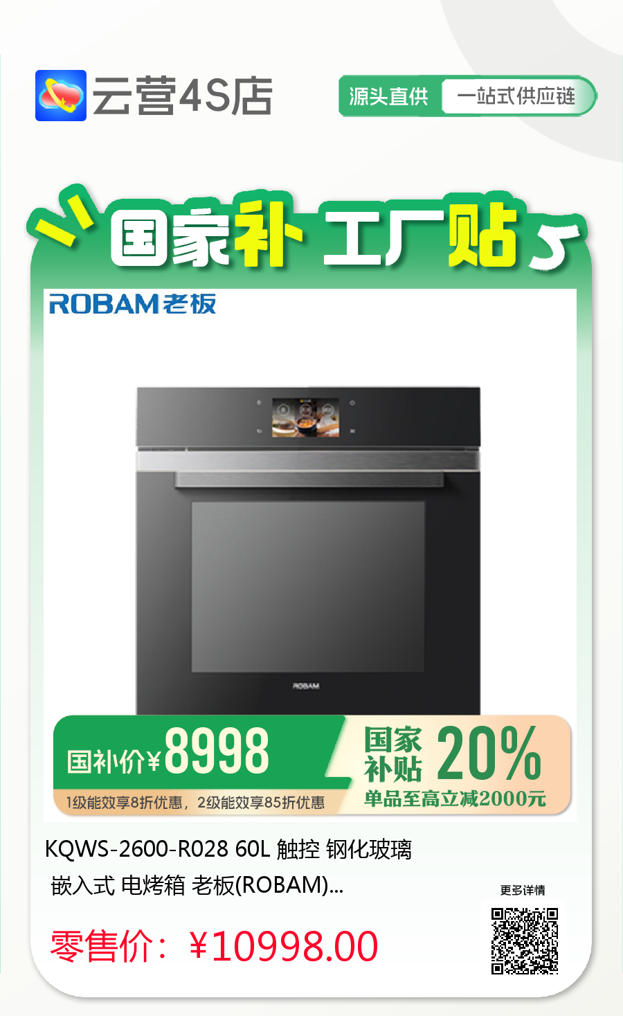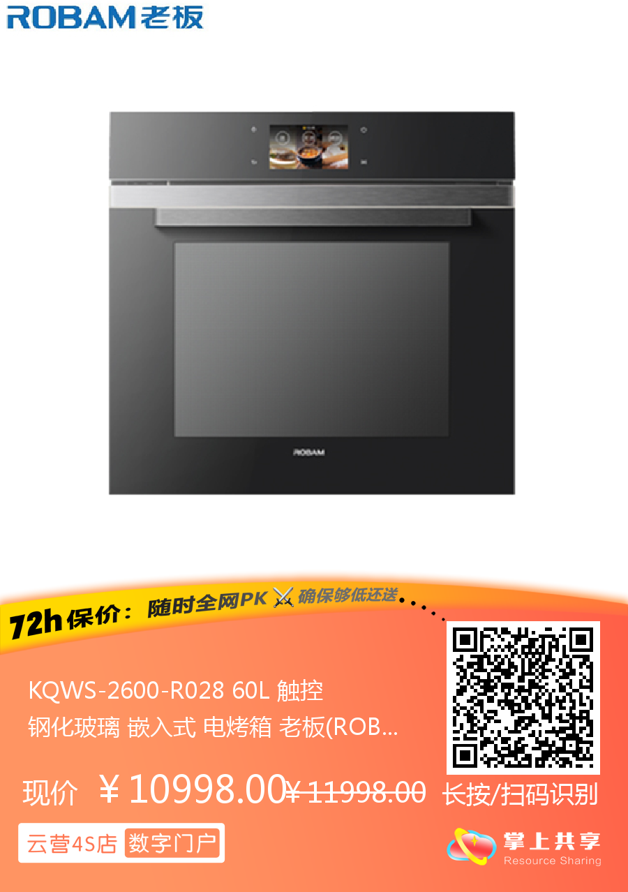 KQWS-2600-R028 60L 触控 钢化玻璃 嵌入式 电烤箱 老板(ROBAM)