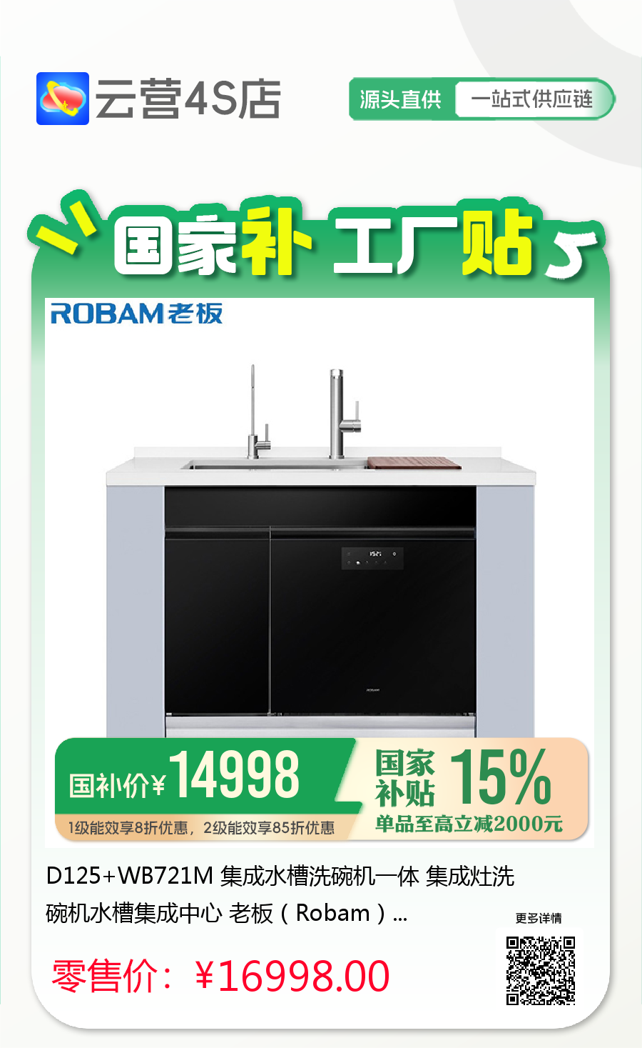 D125+WB721M 集成水槽洗碗机一体 集成灶洗碗机水槽集成中心 老板(Robam)