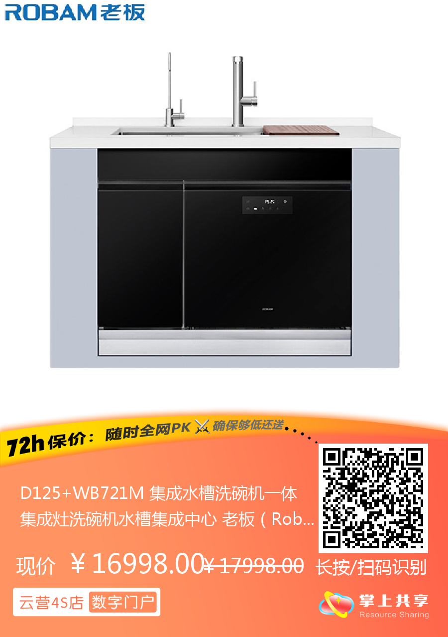 D125+WB721M 集成水槽洗碗机一体 集成灶洗碗机水槽集成中心 老板(Robam)