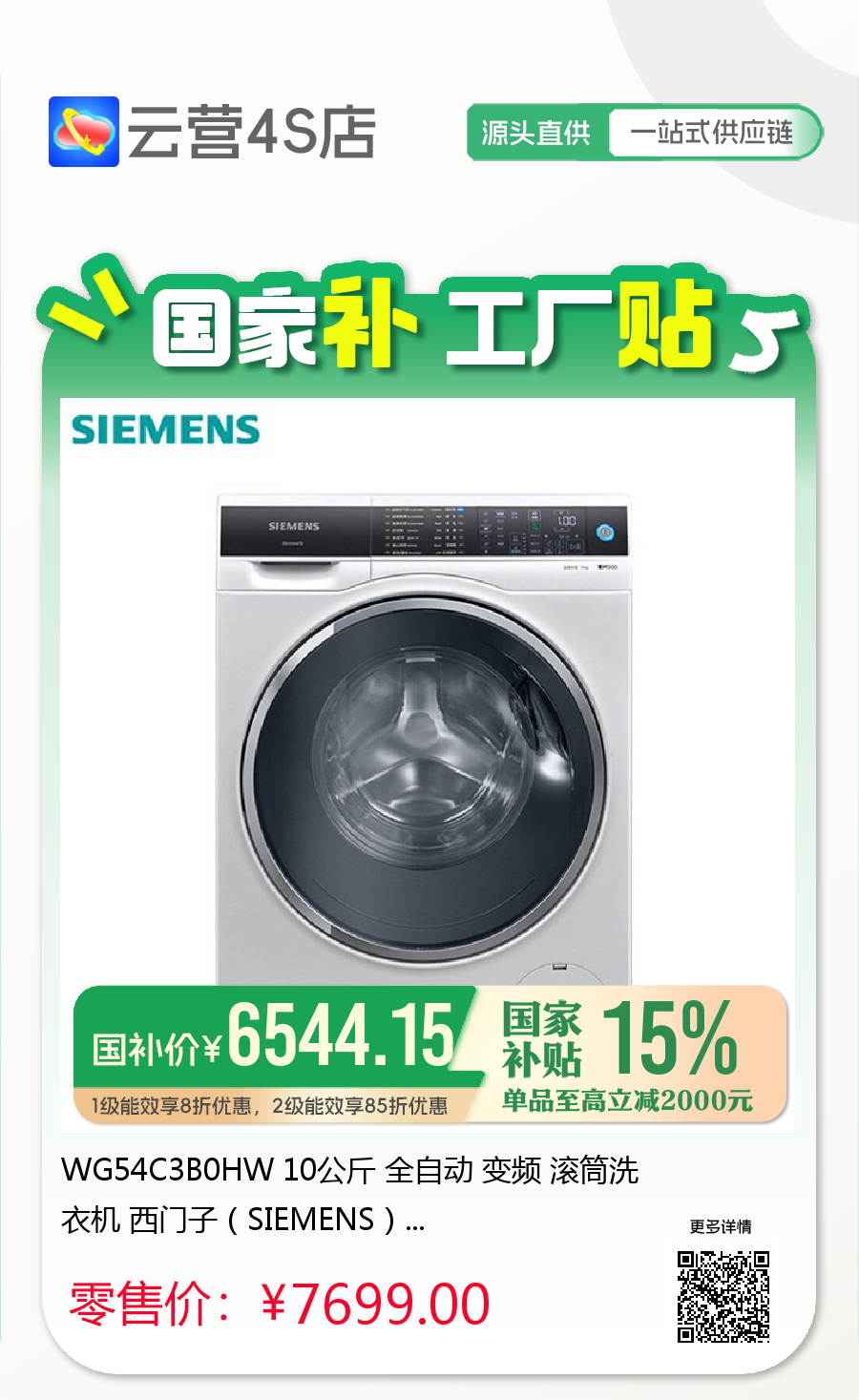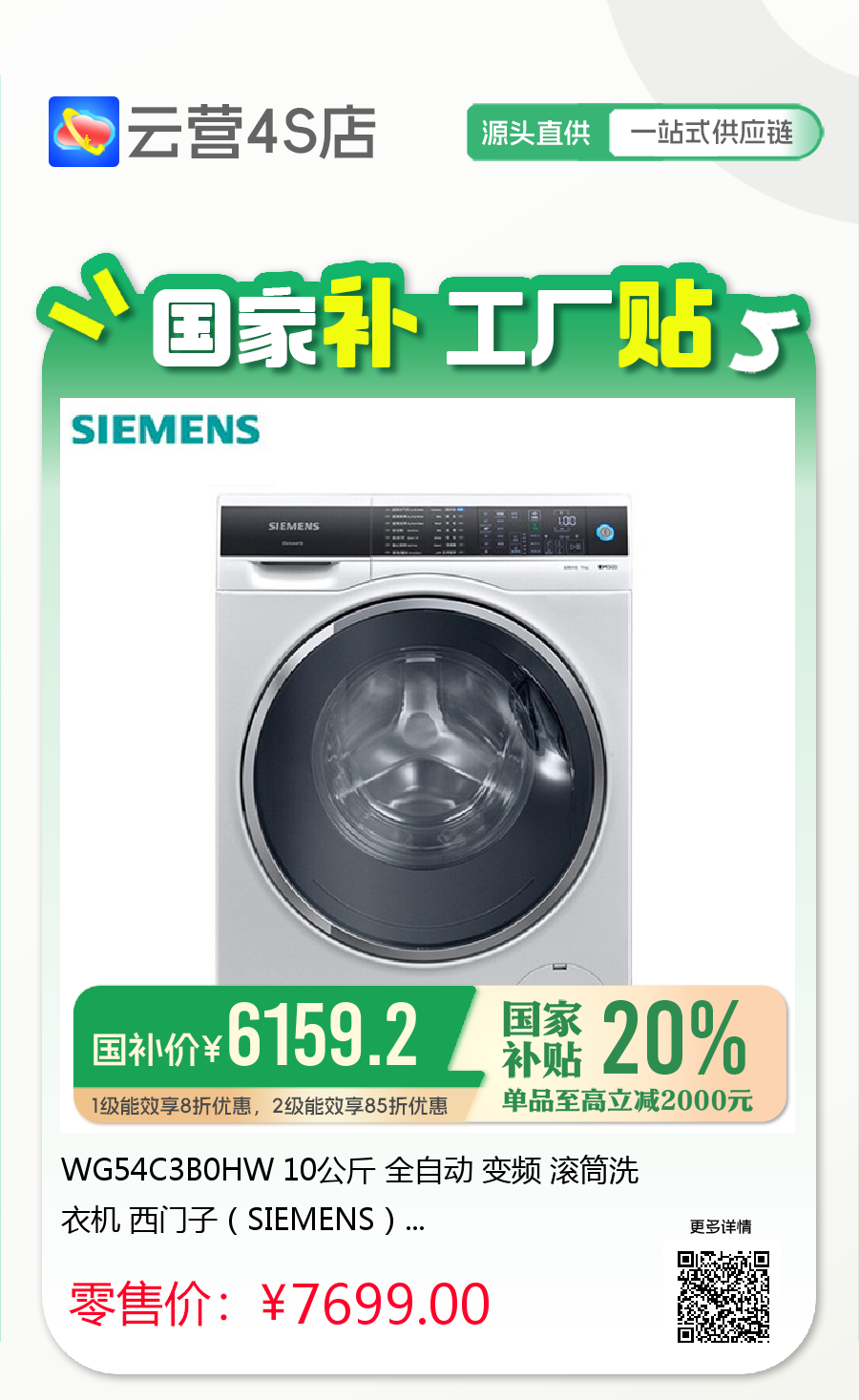 WG54C3B0HW 10公斤 全自动 变频 滚筒洗衣机 西门子(SIEMENS)