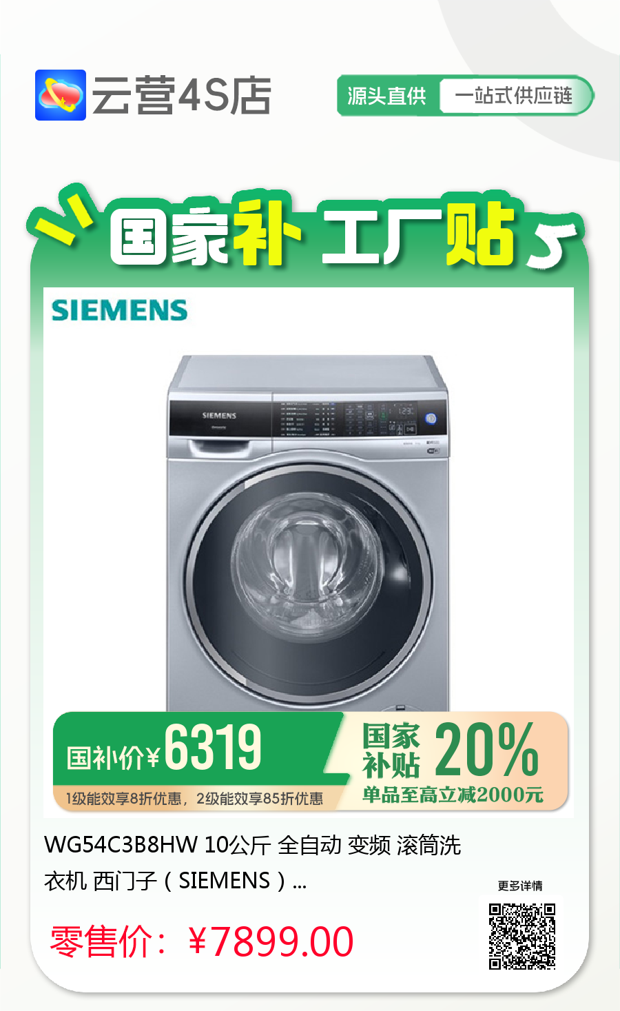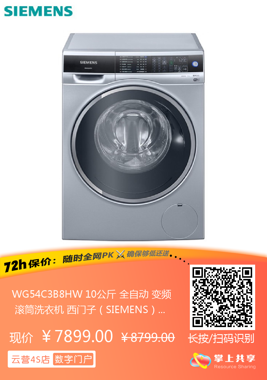 WG54C3B8HW 10公斤 全自动 变频 滚筒洗衣机 西门子(SIEMENS)