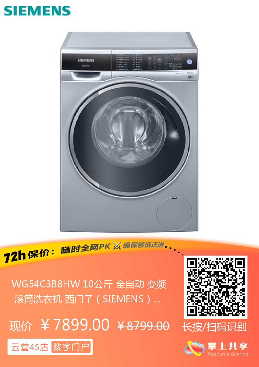 WG54C3B8HW 10公斤 全自动 变频 滚筒洗衣机 西门子(SIEMENS)