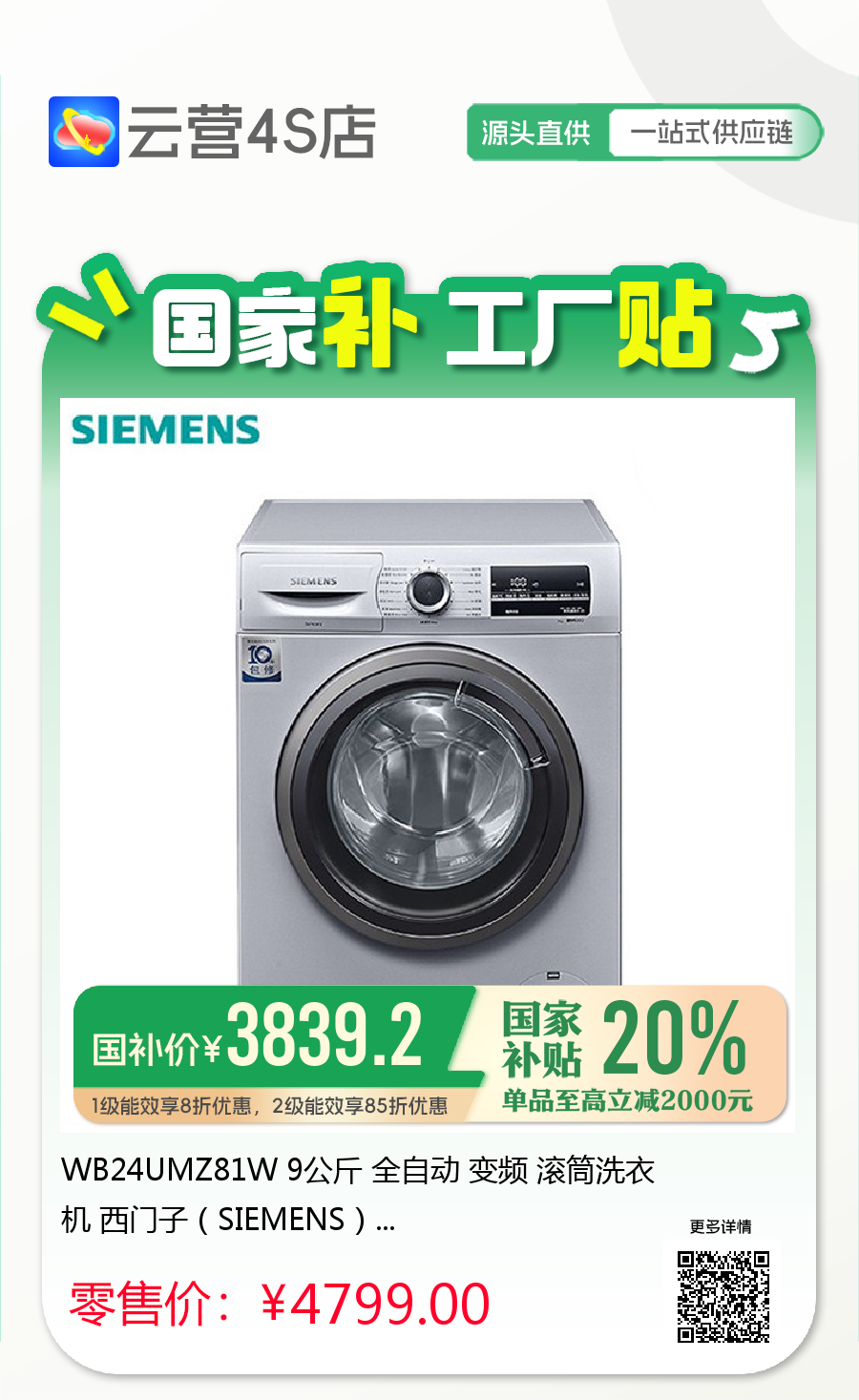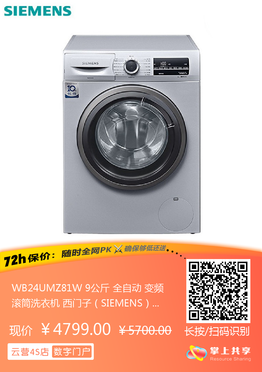 WB24UMZ81W 9公斤 全自动 变频 滚筒洗衣机 西门子(SIEMENS)
