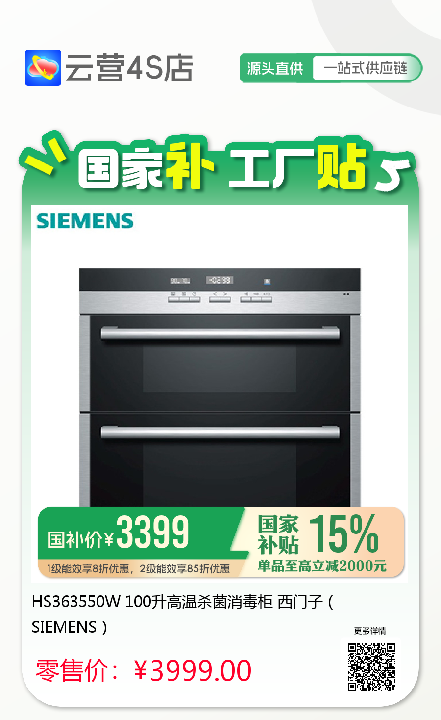 HS363550W 100升高温杀菌消毒柜 西门子(SIEMENS)