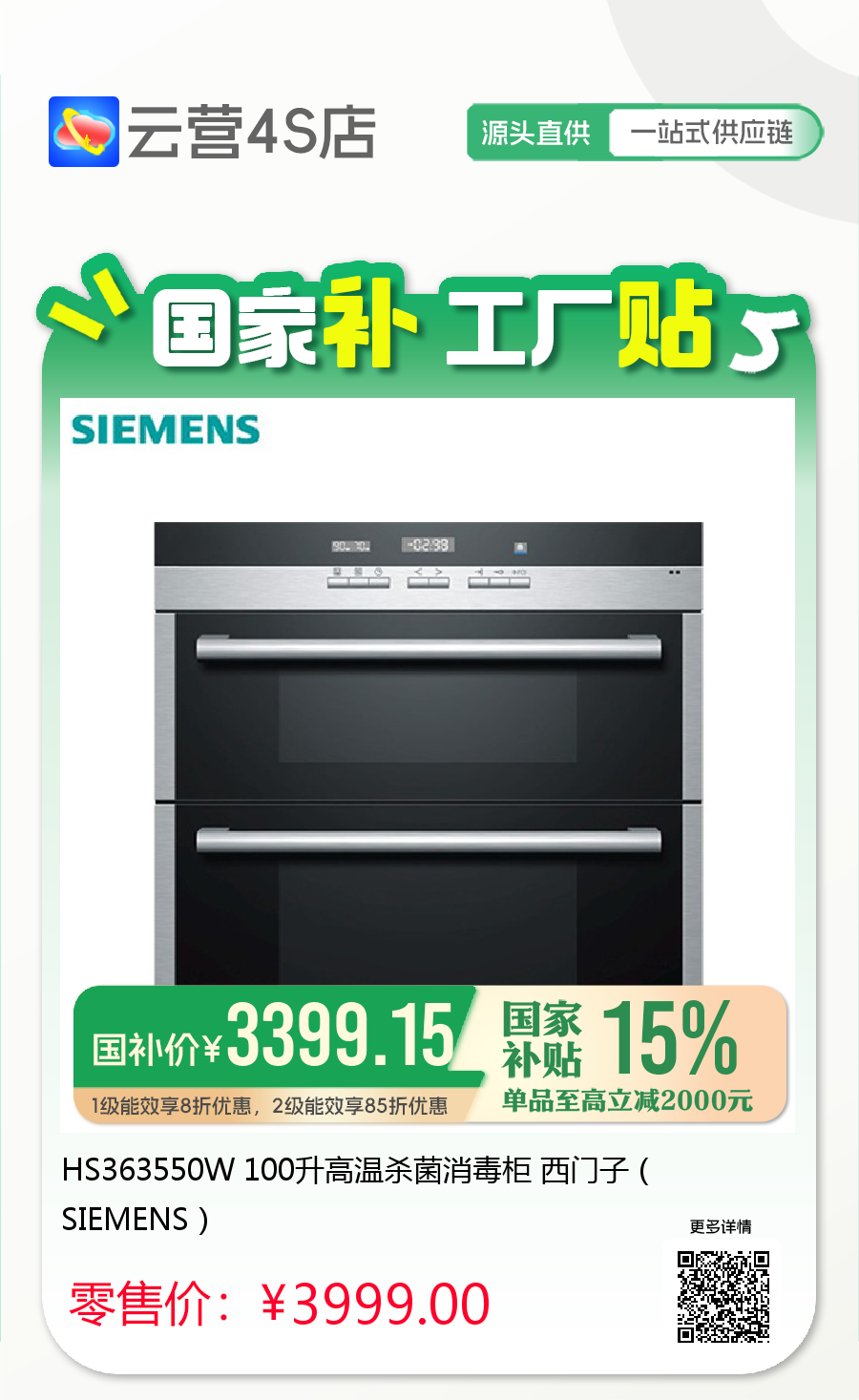 HS363550W 100升高温杀菌消毒柜 西门子(SIEMENS)
