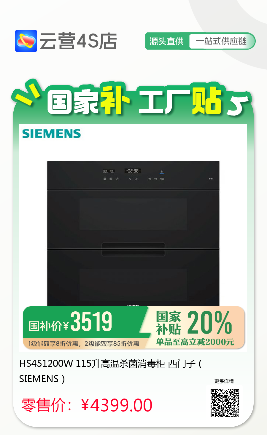 HS451200W 115升高温杀菌消毒柜 西门子(SIEMENS)