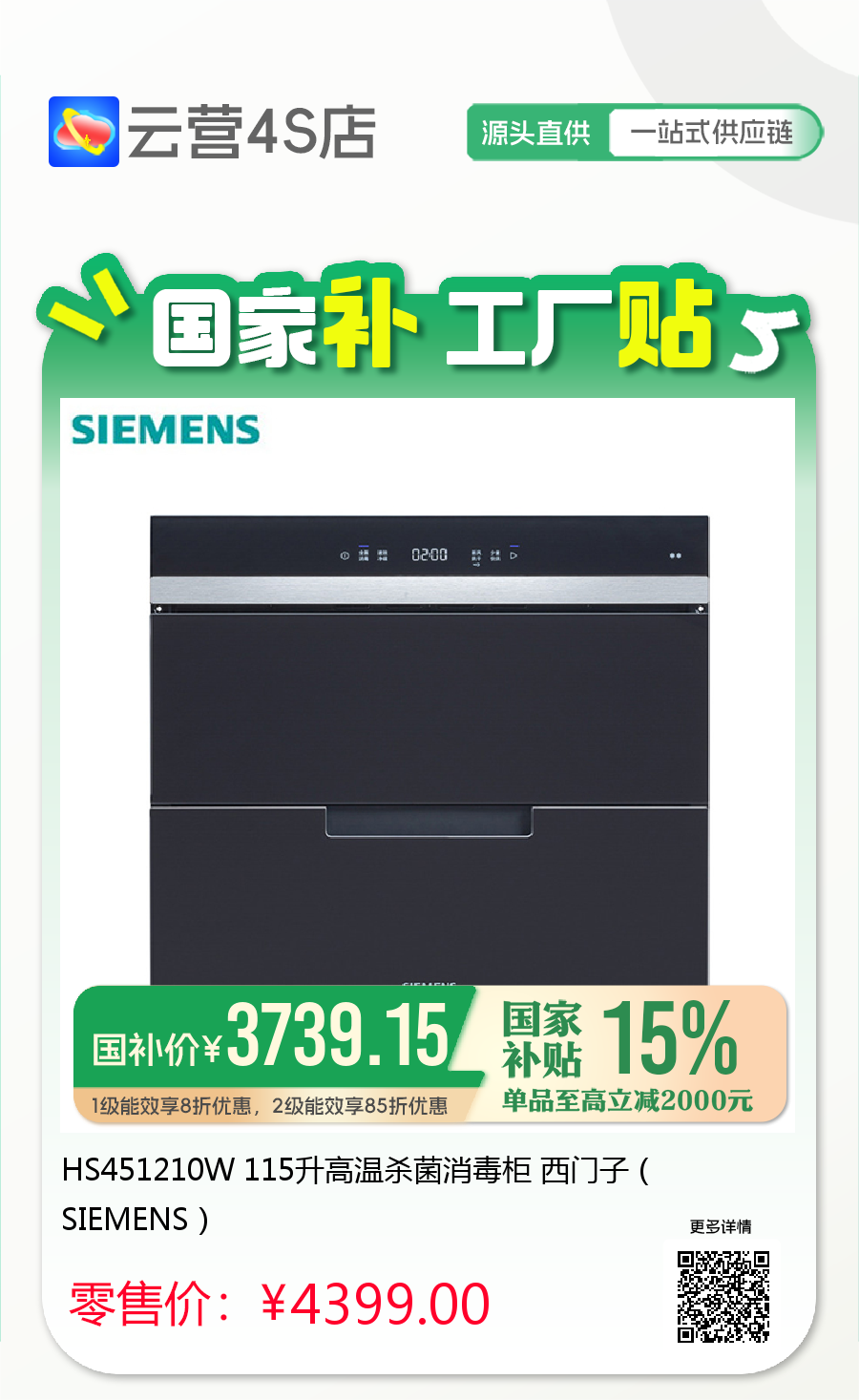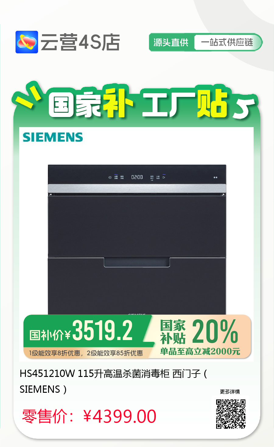 HS451210W 115升高温杀菌消毒柜 西门子(SIEMENS)