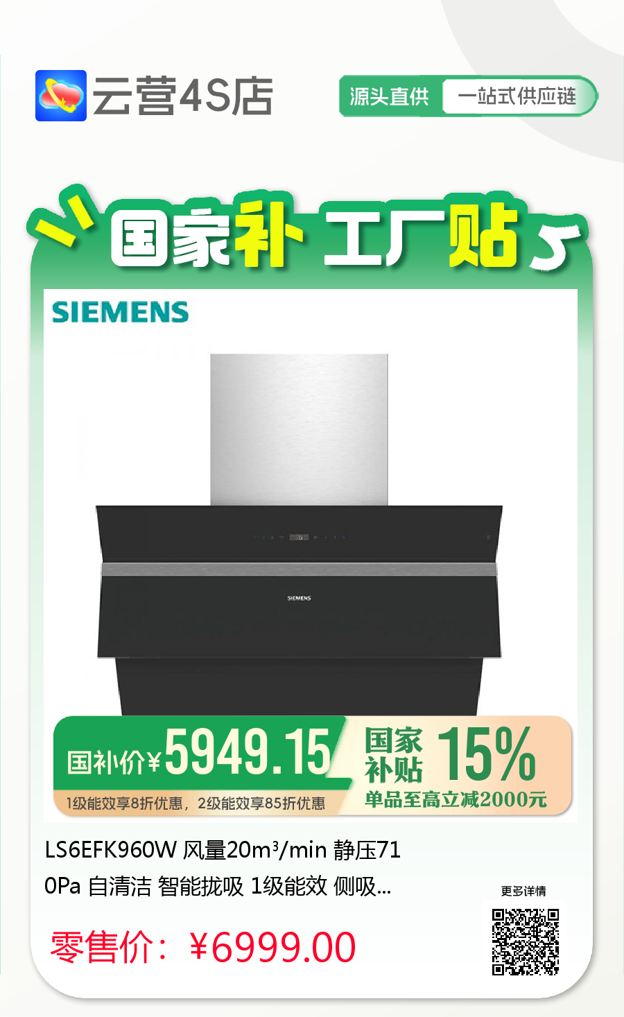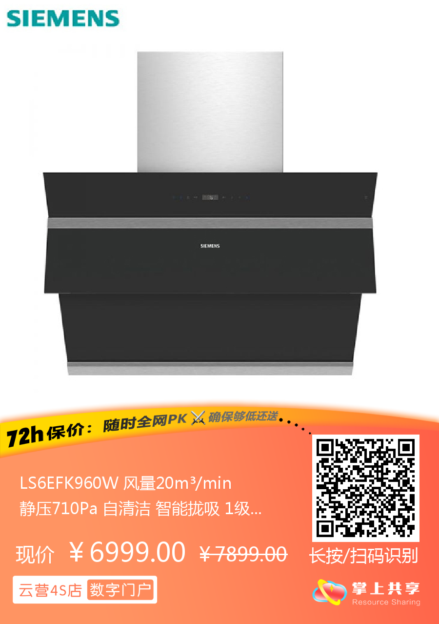 LS6EFK960W 风量20m³/min 静压710Pa 自清洁 智能拢吸 1级能效 侧吸